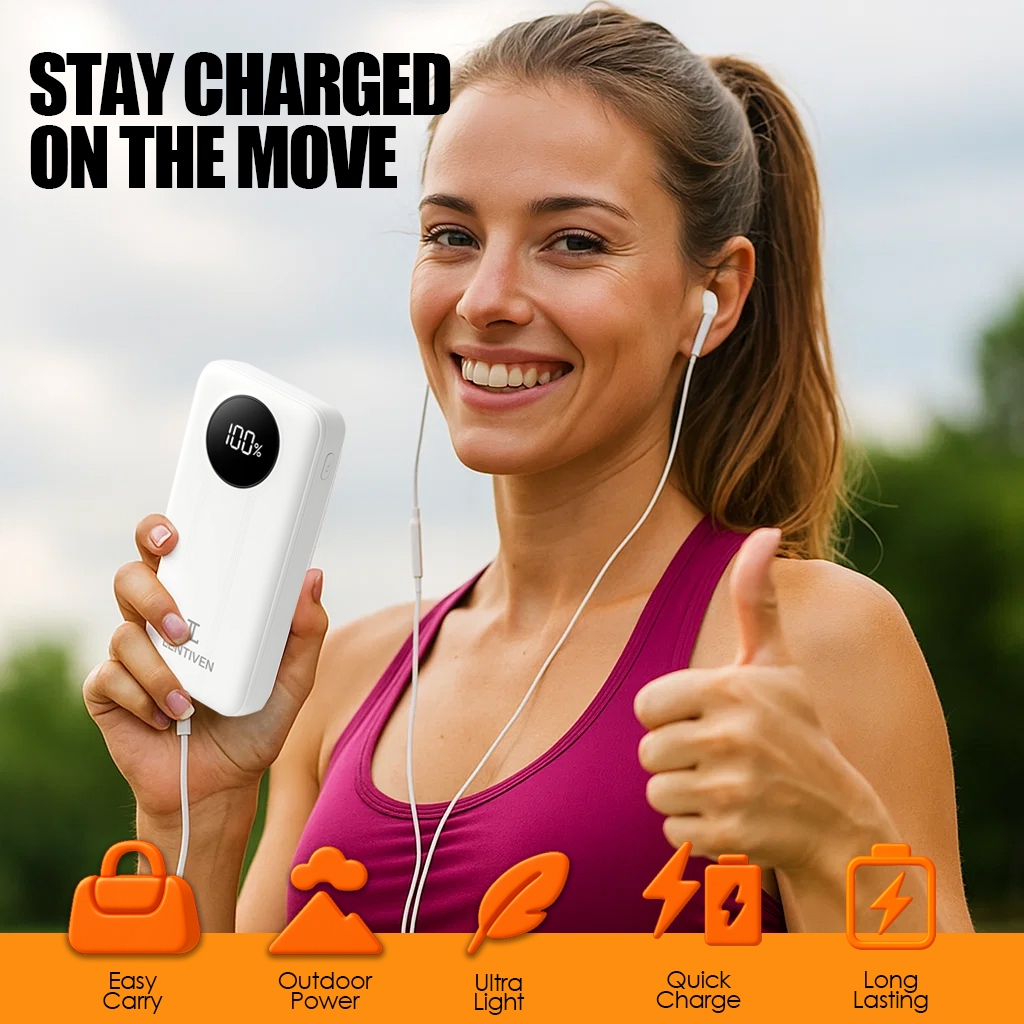 LENTIVEN 10000mAh Powerbank Mini Fast Charging 1 KABEL Type C For Iphone/Android CW080