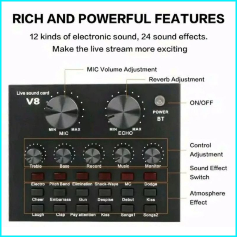 Sound Card V8 Bluetooth Audio Usb External Mixer Audio V8