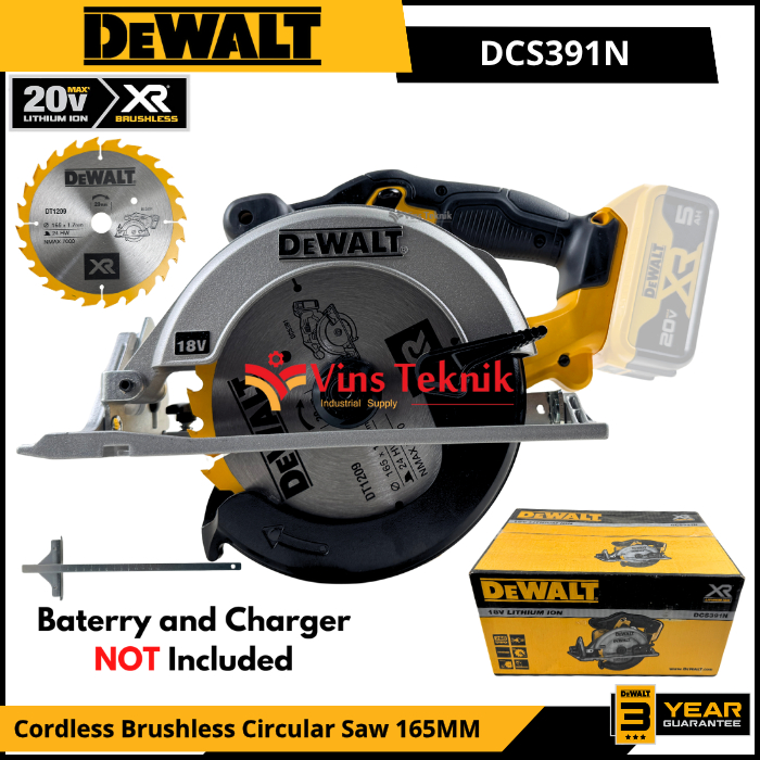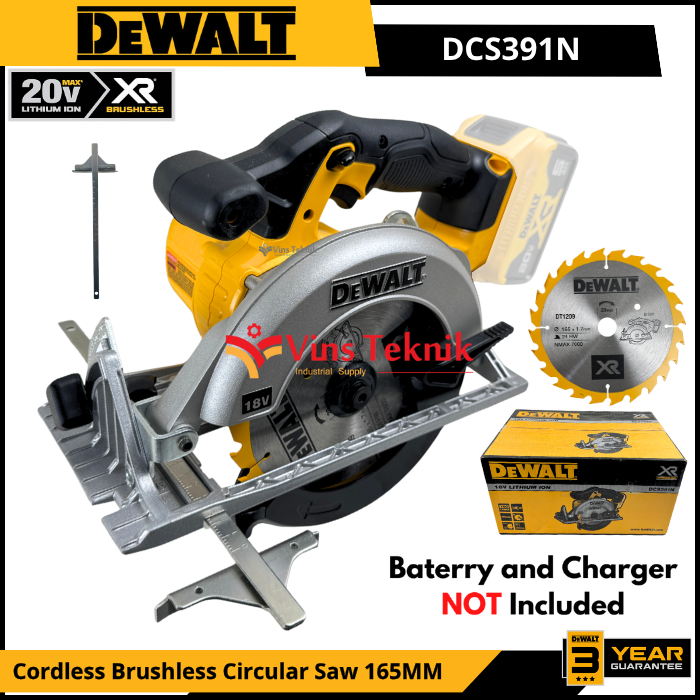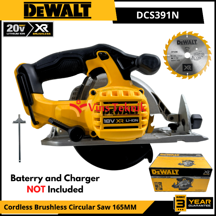 DEWALT DCS391N MESIN GERGAJI KAYU SIRKEL BATERAI CORDLESS BRUSHLESS CIRCULAR SAW 6.5" 165MM 20V DCS391