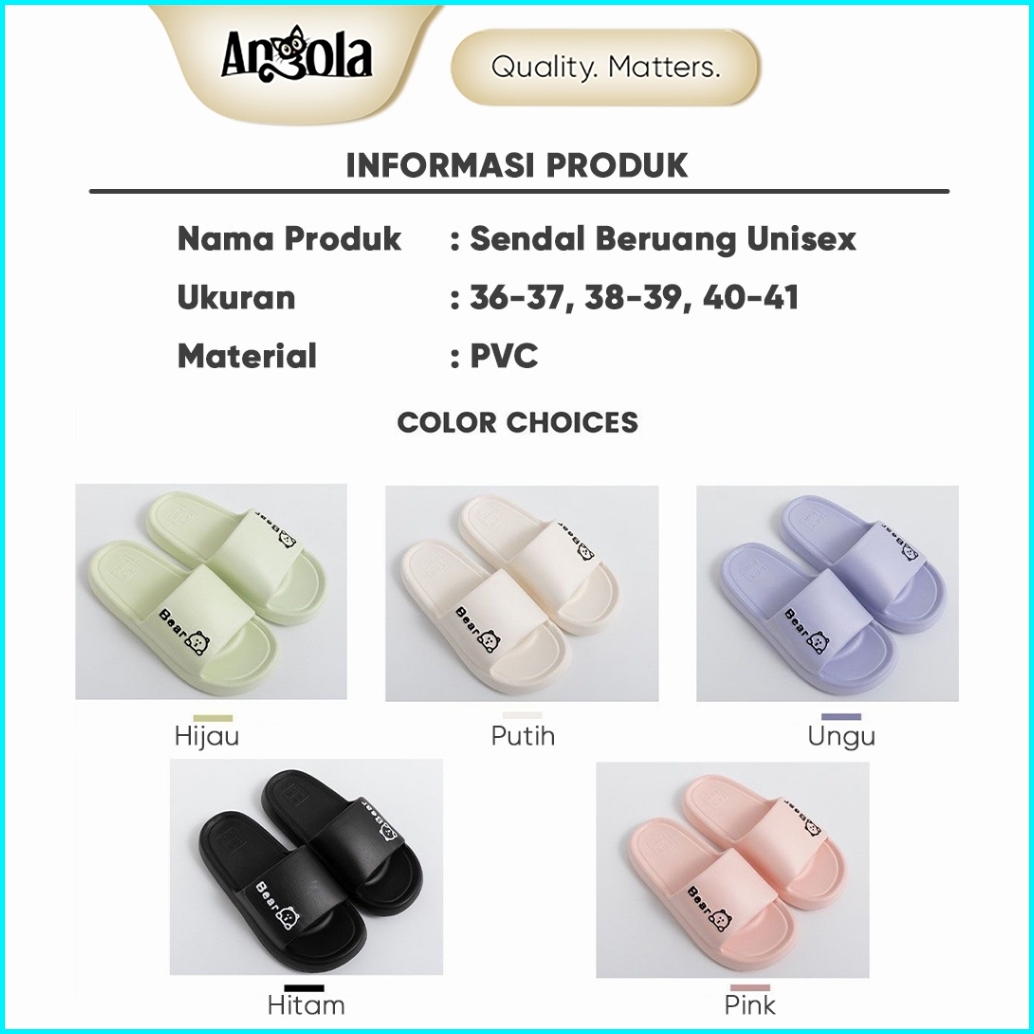 Angola Sandal Rumah Karet Wanita Pria H03 Sandal Bear Sandal Santai Unisex Anti Licin Super Empuk