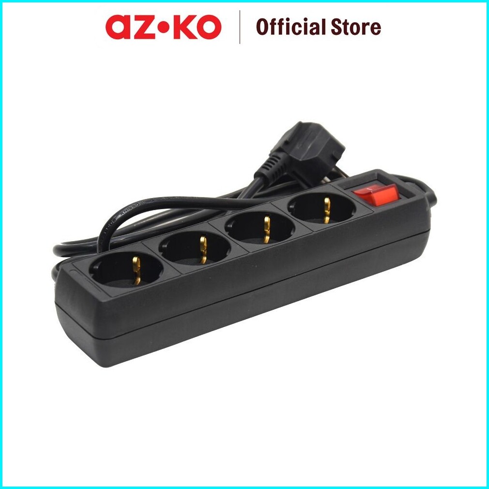Azko Krisbow Stop Kontak 4 Socket - Hitam Electric Socket Terminal Colokan Listrik Peralatan Elektronik Extension Kotak