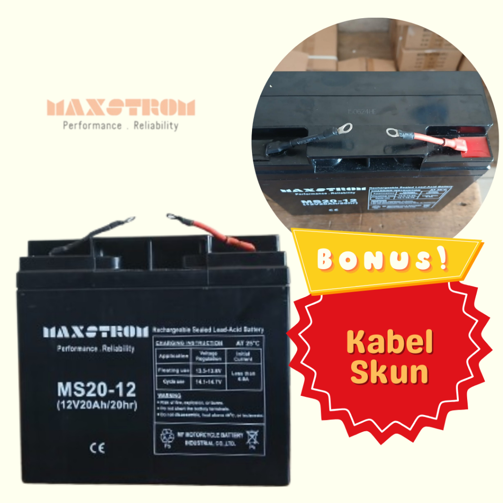Aki Maxstrom untuk Genset 12V 20Ah Model Socket