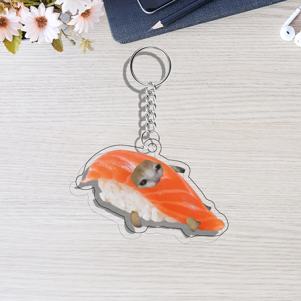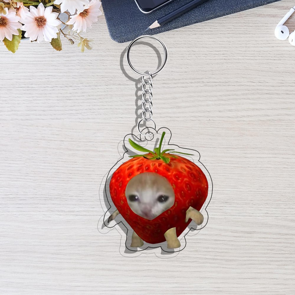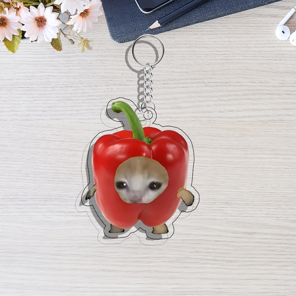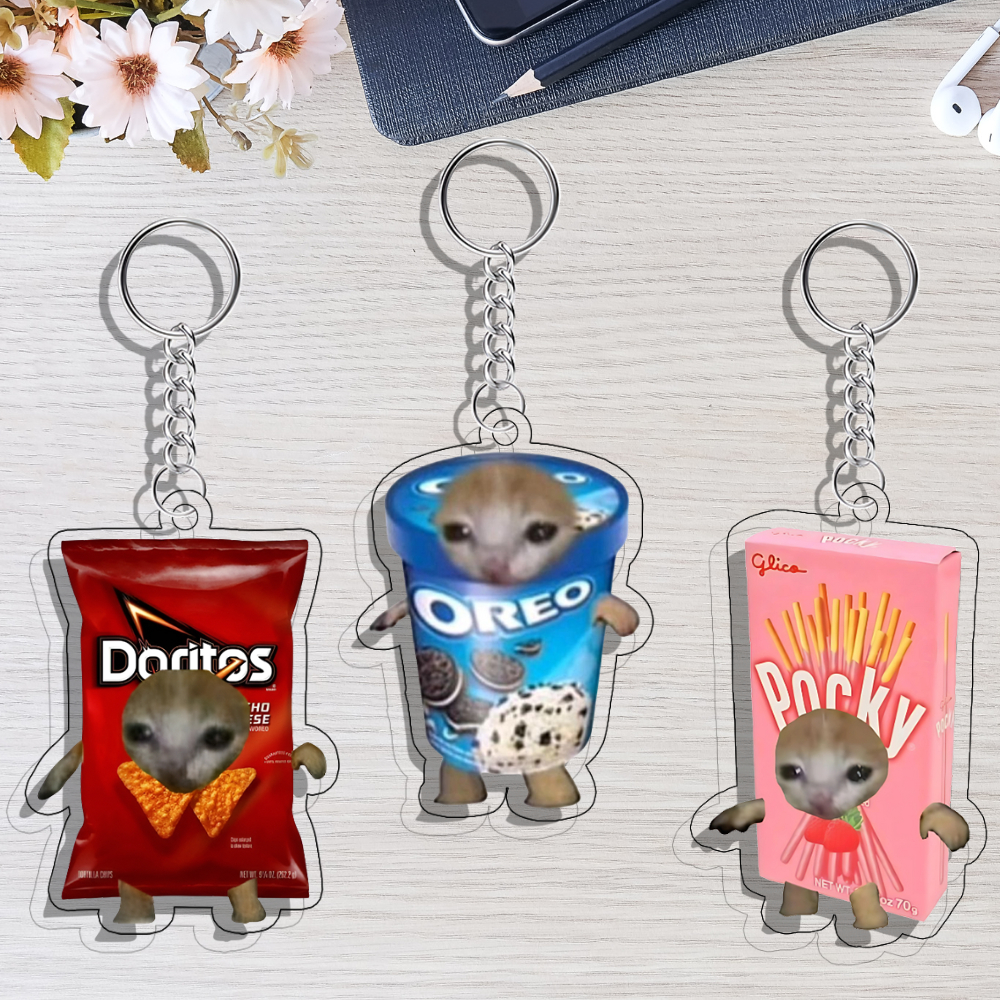 Meme Cat Food Keychain | Gantungan Kunci Meme Kucing Makanan UV Printed 2 Sisi on 3Mm Acrylic Frame