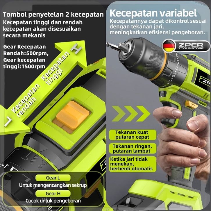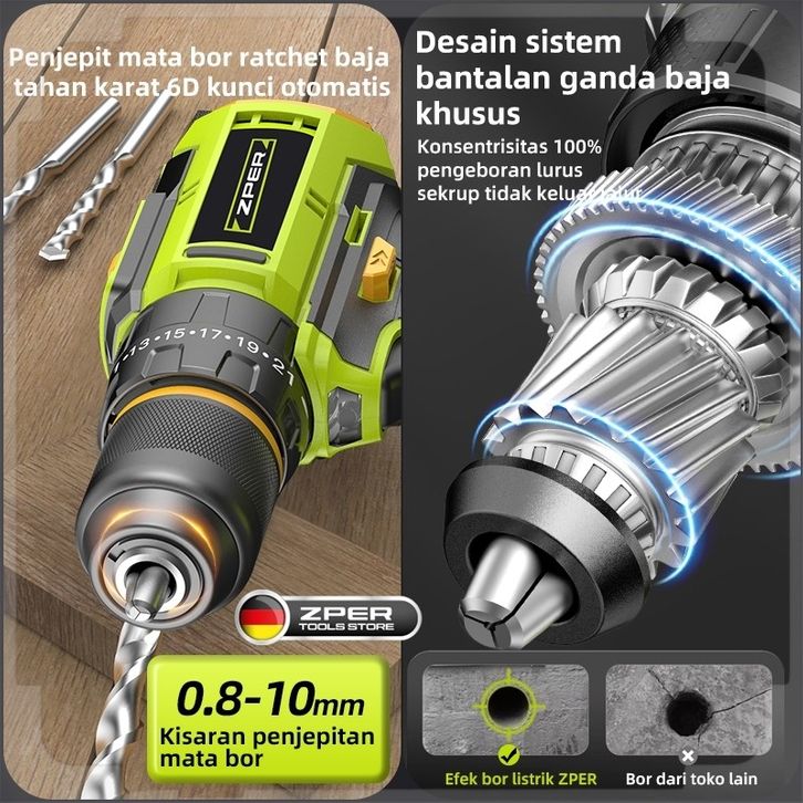 Mesin Bor Cordless Motor Tanpa Arang Bor Cordless Multifungsi Brushless ZPER