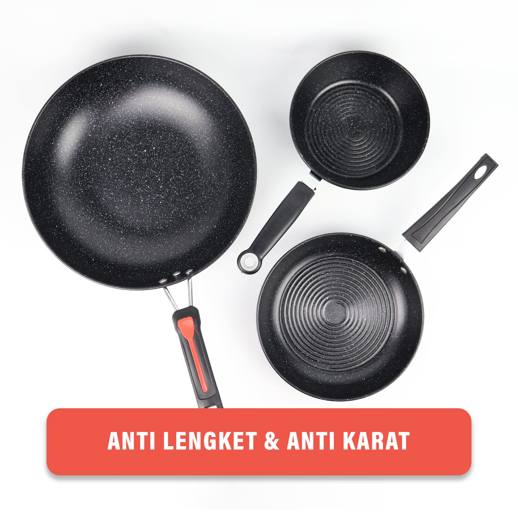 Panci Wajan Penggorengan Set 3pcs Wajan Penggorengan Anti Lengket | Alat Memasak | Wajan Teflon Set Lengkap
