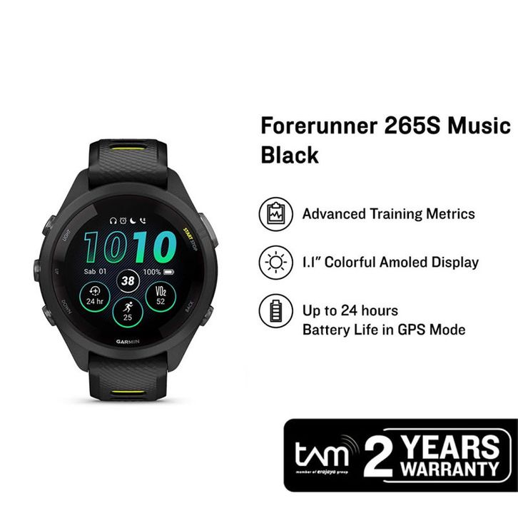 Terlaris Jam Tangan wanita Digital Garmin Forerunner 265S 010-02810-53 01002810 Smartwatch Black Strap Elegan