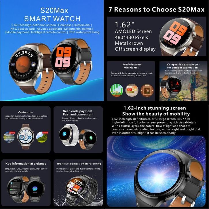Grosir 【✔️100 Original】 Smart Watch GT Series S20 Max jam tangan smartwatch pria Wanita jam tangan pria | 1.62-inch AM