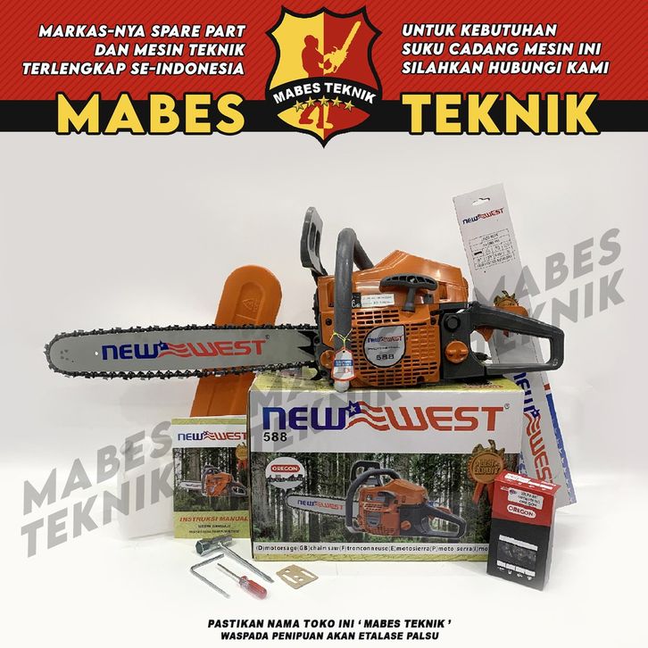 CHAINSAW NEW WEST NW 588 / NW588 - BAR 22" - MESIN POTONG KAYU BENSIN + RANTAI OREGON - SIAP PAKAI