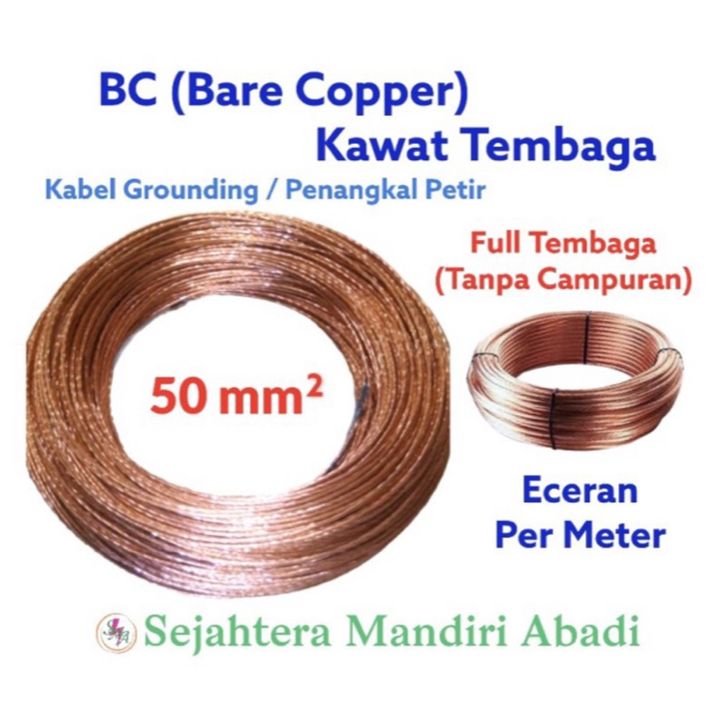 Kabel BC 50 mm Kawat Tembaga Full 50 mm Grounding Anti Petir Per Meter