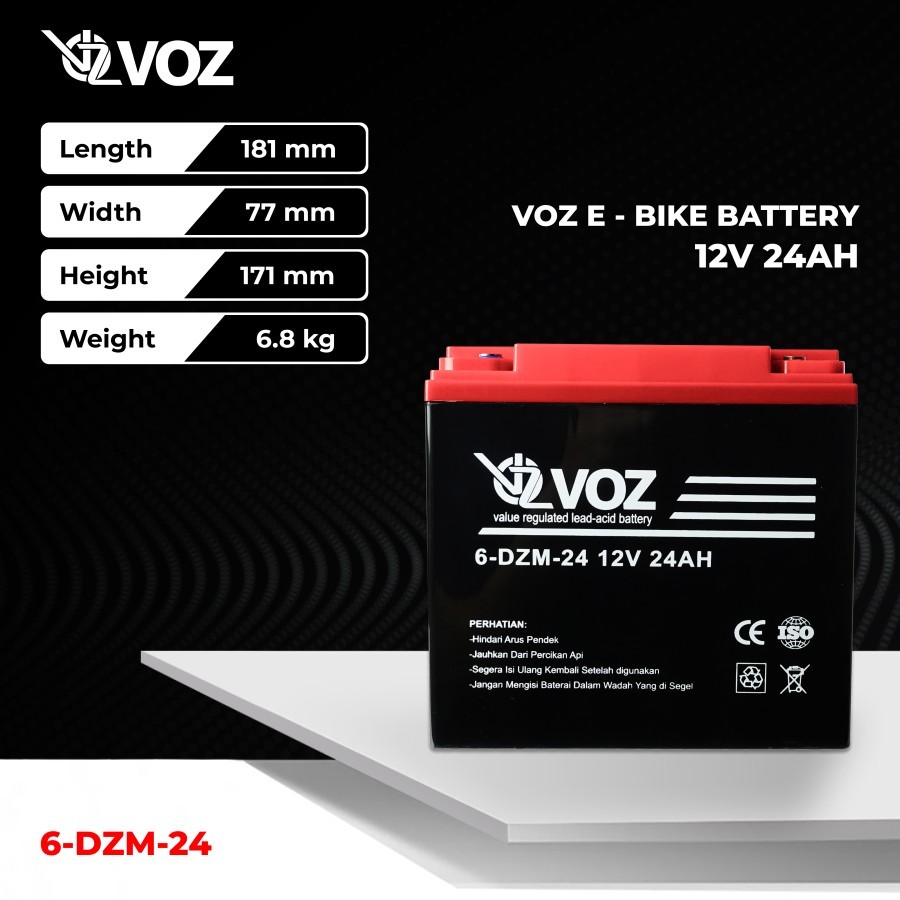 Voz Baterai Sepeda Listrik Motor Listrik 12V 24 Ah | Voz E-Bike Baterai 12V 24Ah 6DZF24 ORIGINAL MURAH BERGARANSI