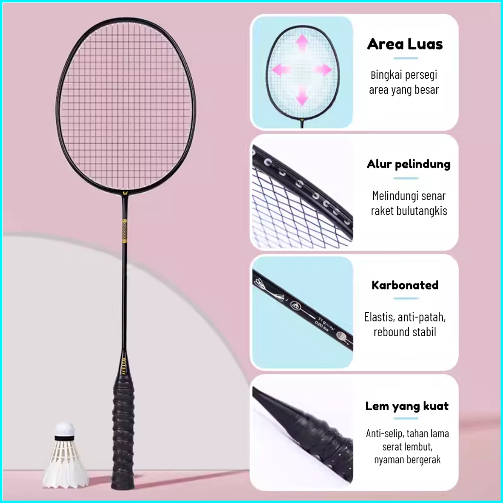 Raket Carbon Badminton Racket Gr 520 Silver Termasuk Senar Plus Cover