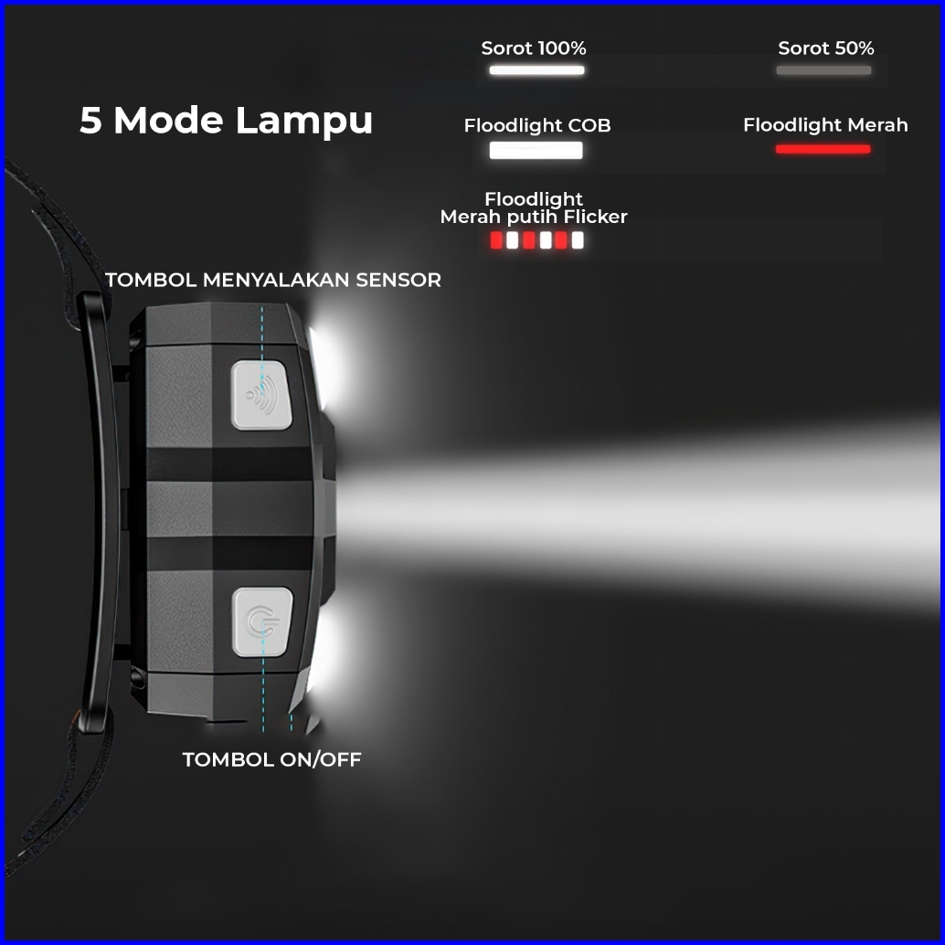 Suksestech Senter Cas Kepala Sensor Headlamp Led 5 Mode Multifungsi Waterproof 5839