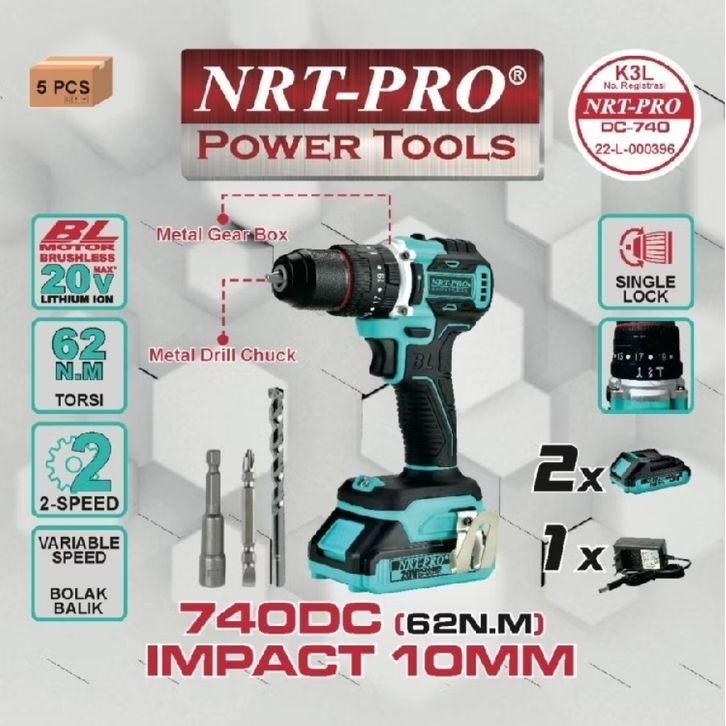 Bor NRT PRO DC 740 20V BRUSHLESS Impact Drill Bor Beton 3 Mode