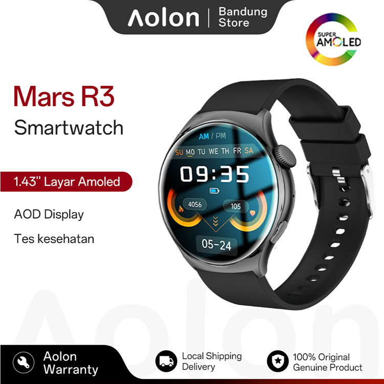 Aolon Mars R3 Jam Tangan Pria Running Pace | Amoled Screen | Aod | Metal Case | Custom Wallpaper | Bluetooth Call | Heal