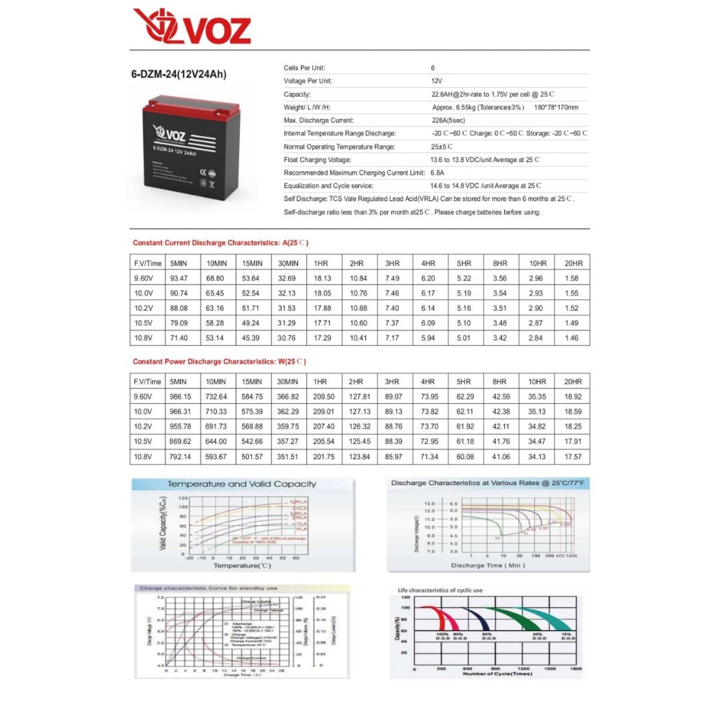 Voz Baterai Sepeda Listrik Motor Listrik 12V 24 Ah | Voz E-Bike Baterai 12V 24Ah 6DZF24 ORIGINAL MURAH BERGARANSI