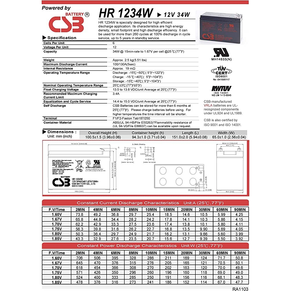 Aki Baterai CSB Hitachi 12V 9Ah HR1234W F2 Solar Panel UPS