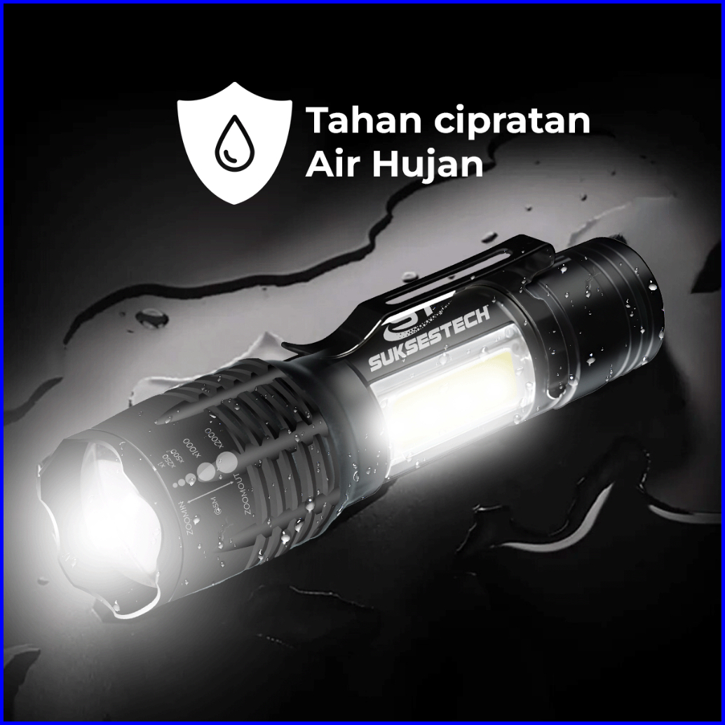 Suksestech Senter Zoom In Out Terang 4 Mode Senter Led Aluminium Free Box 1804