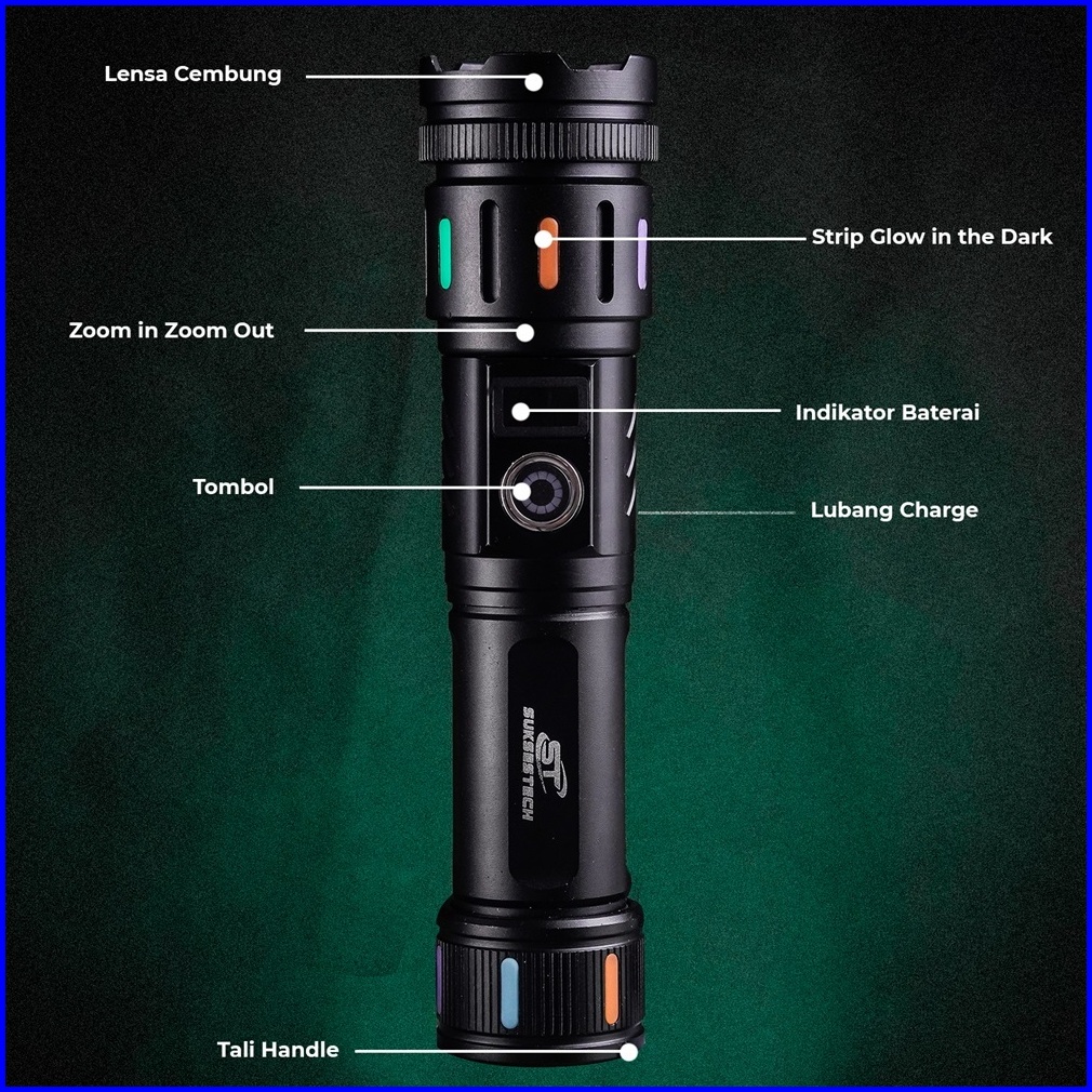 Suksestech Senter Zoom In Out 5 Mode Aluminium Senter Cas Waterproof Free Box 647