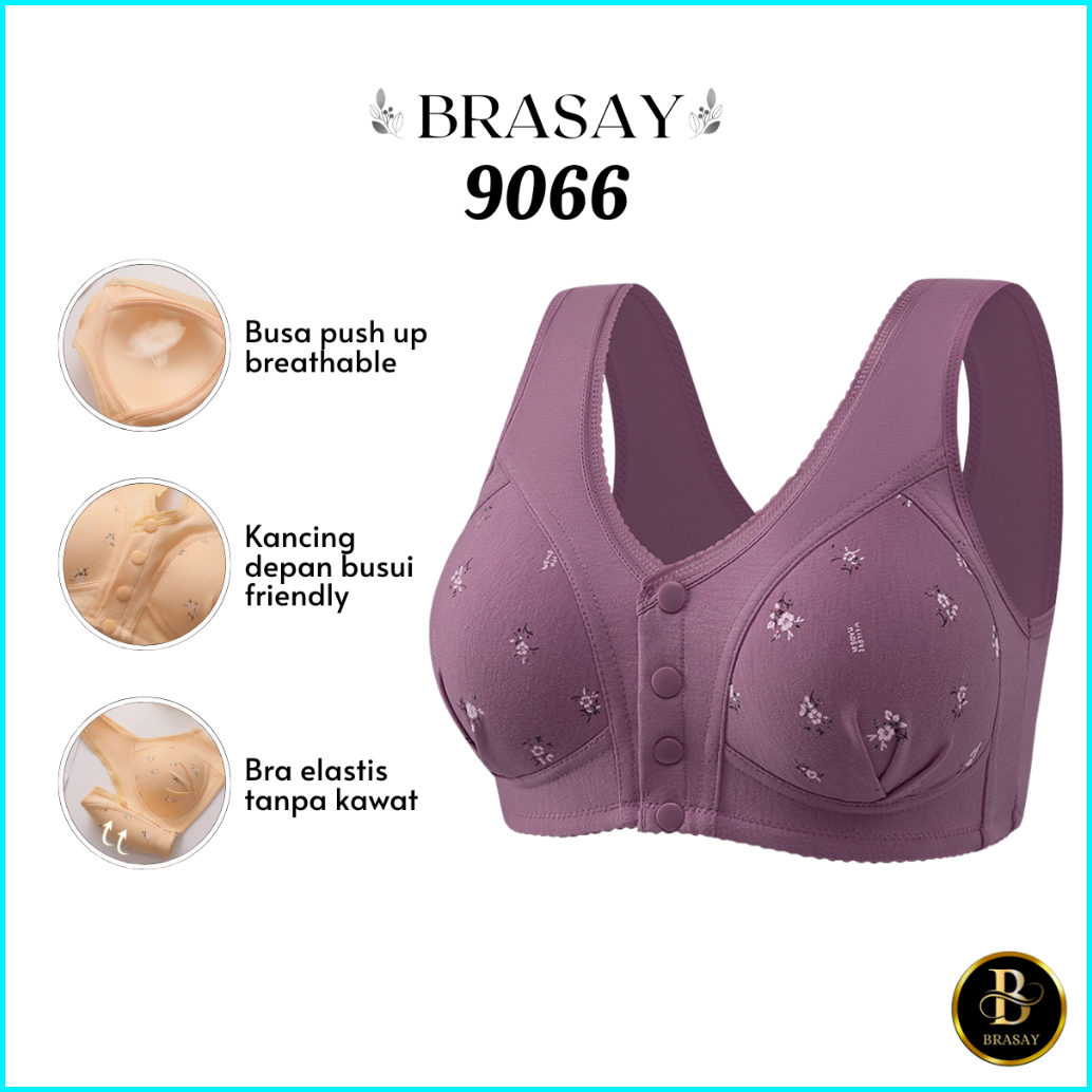 Brasay Bra Wanita Seamless Push Up Kancing Depan Bh Korea Flower Tanpa Kawat Import 9066
