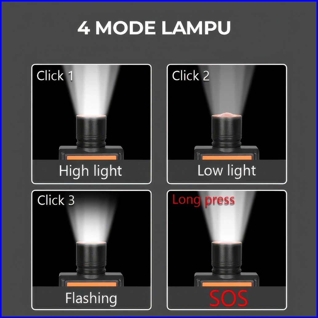 Suksestech Headlamp Zoom In Out Senter Cas Kepala Multifungsi 4 Mode Waterproof Kx 1833