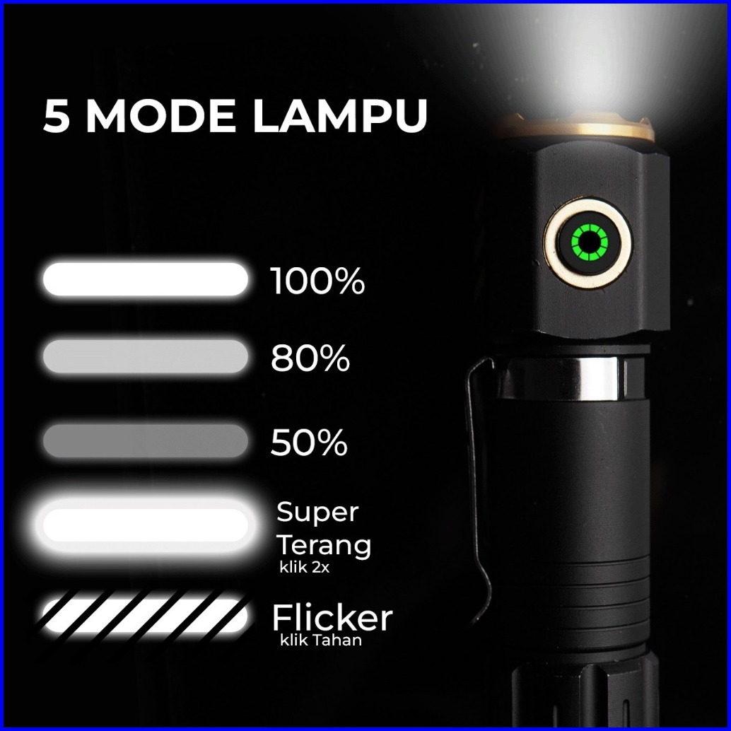 Suksestech Senter Charger Alumunium Mini Senter Saku Maghnet 5 Mode Strong Light 301