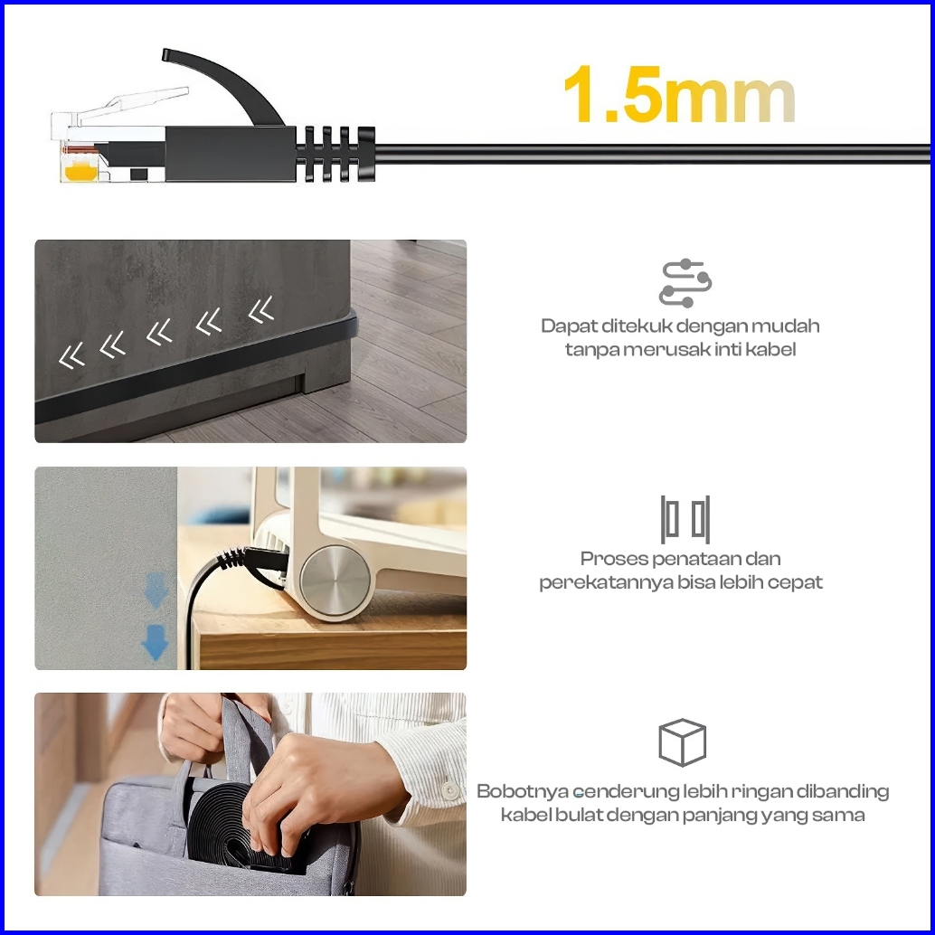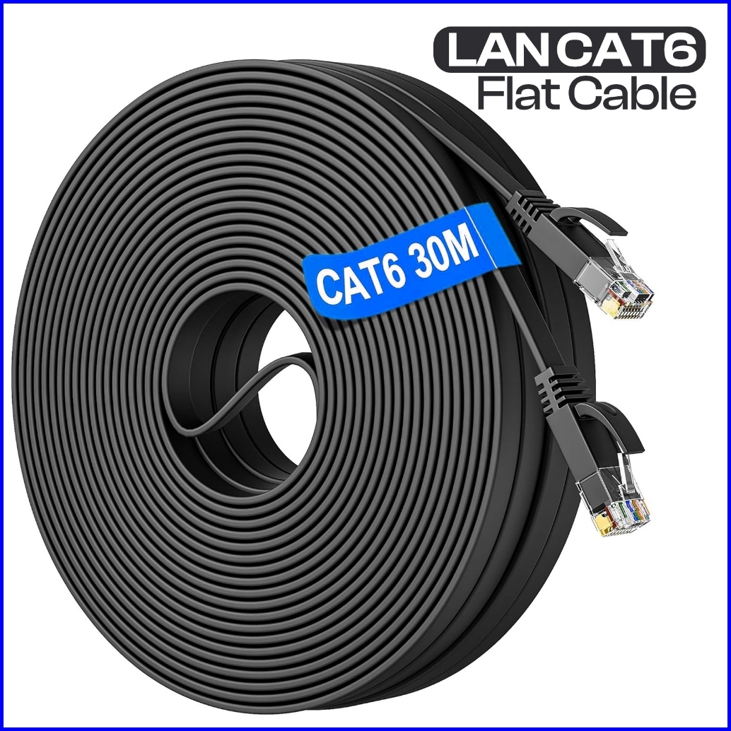 Suksestech Kabel Lan Indoor Cat6 Flat Cable Rj45 Utp Ethernet Network 30 Meter