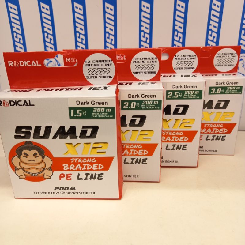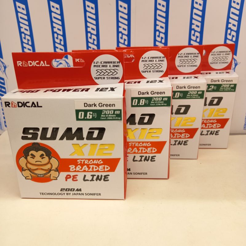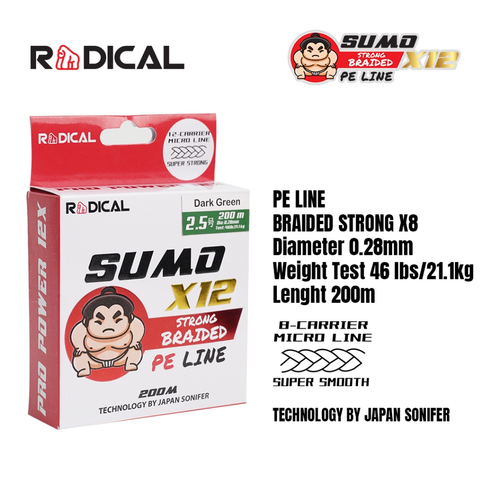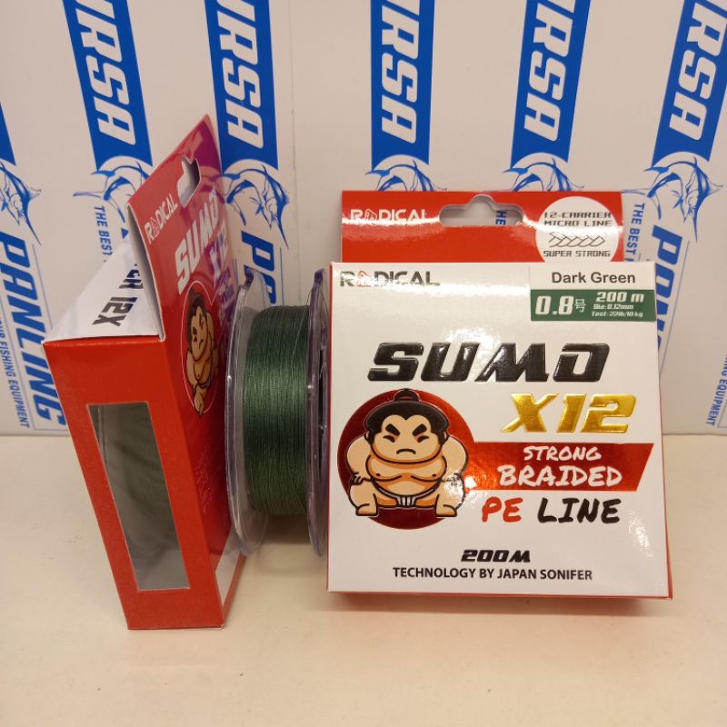 RADICAL Senar Pancing SUMO X12 200M DARK GREEN Tali Pancing PE