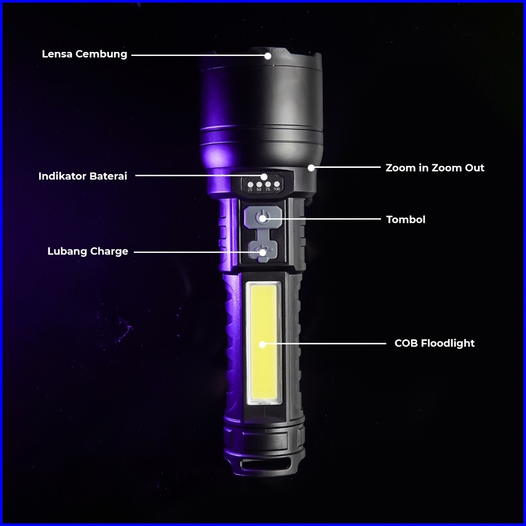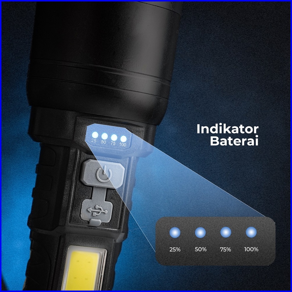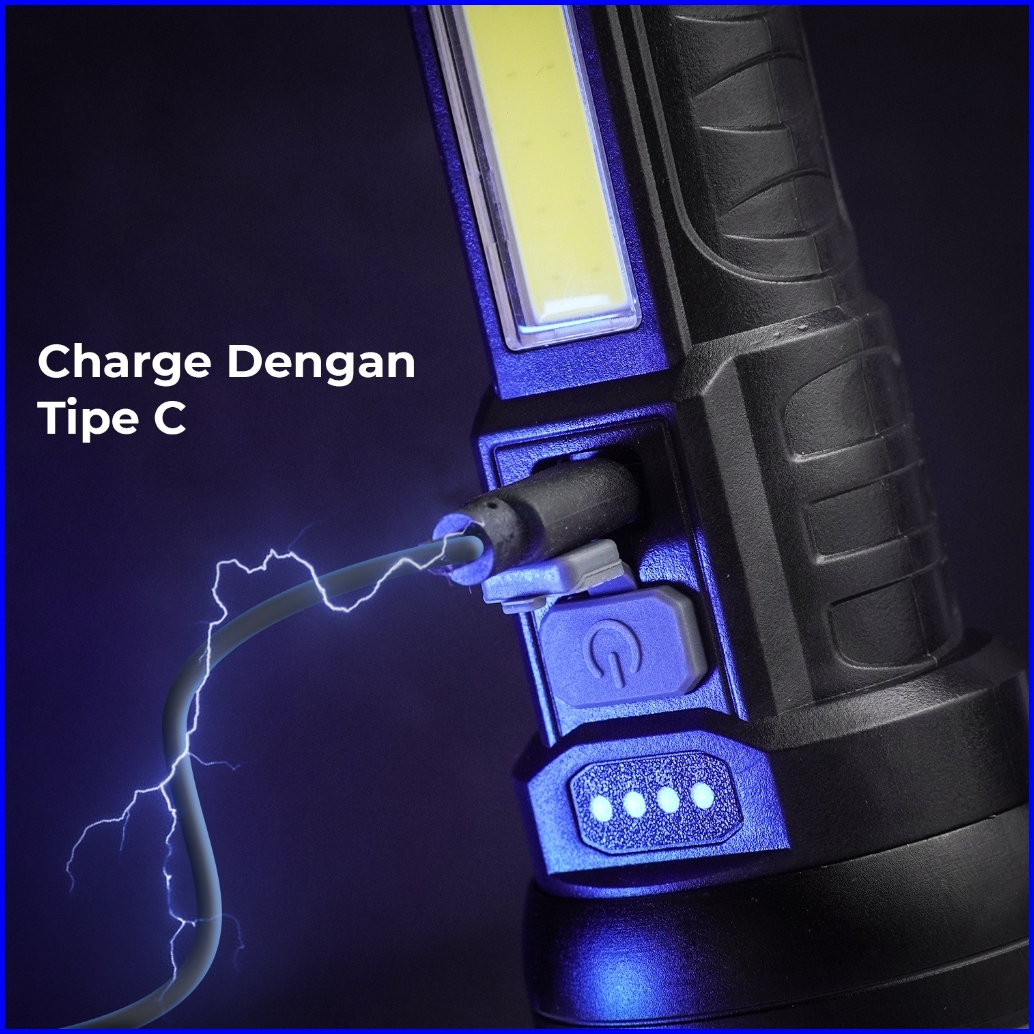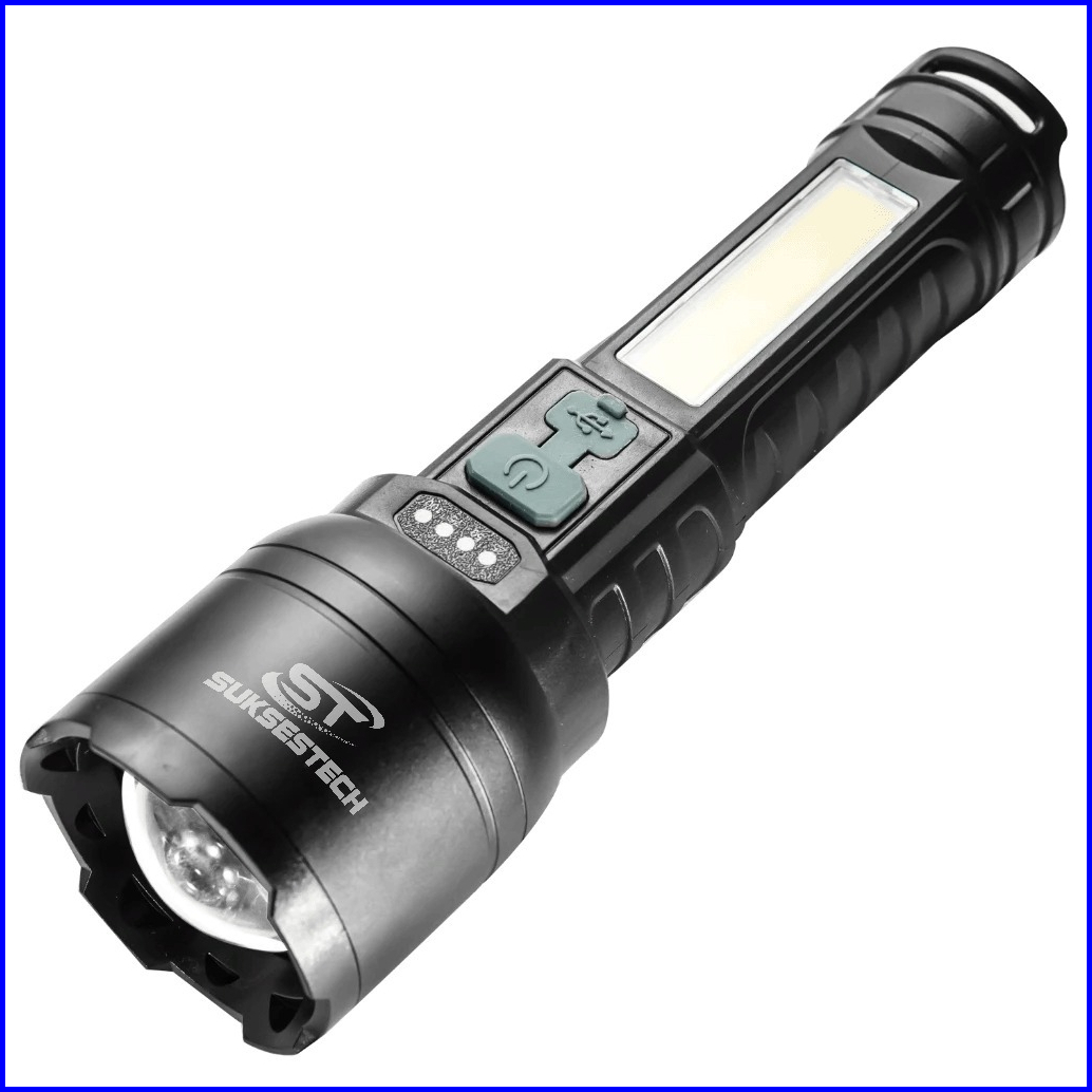 Suksestech Senter Zoom In Out Led Cob 4 Mode Charging Flashlight Waterproof T058