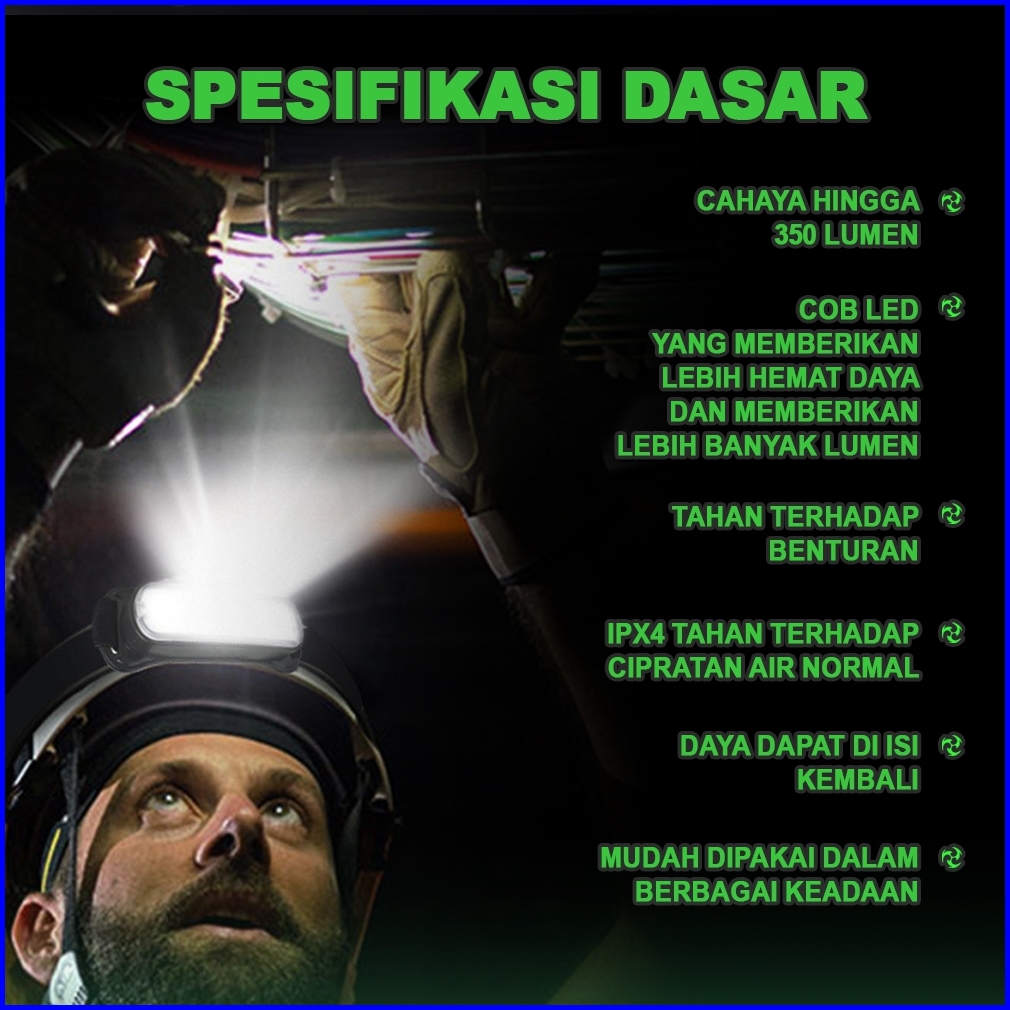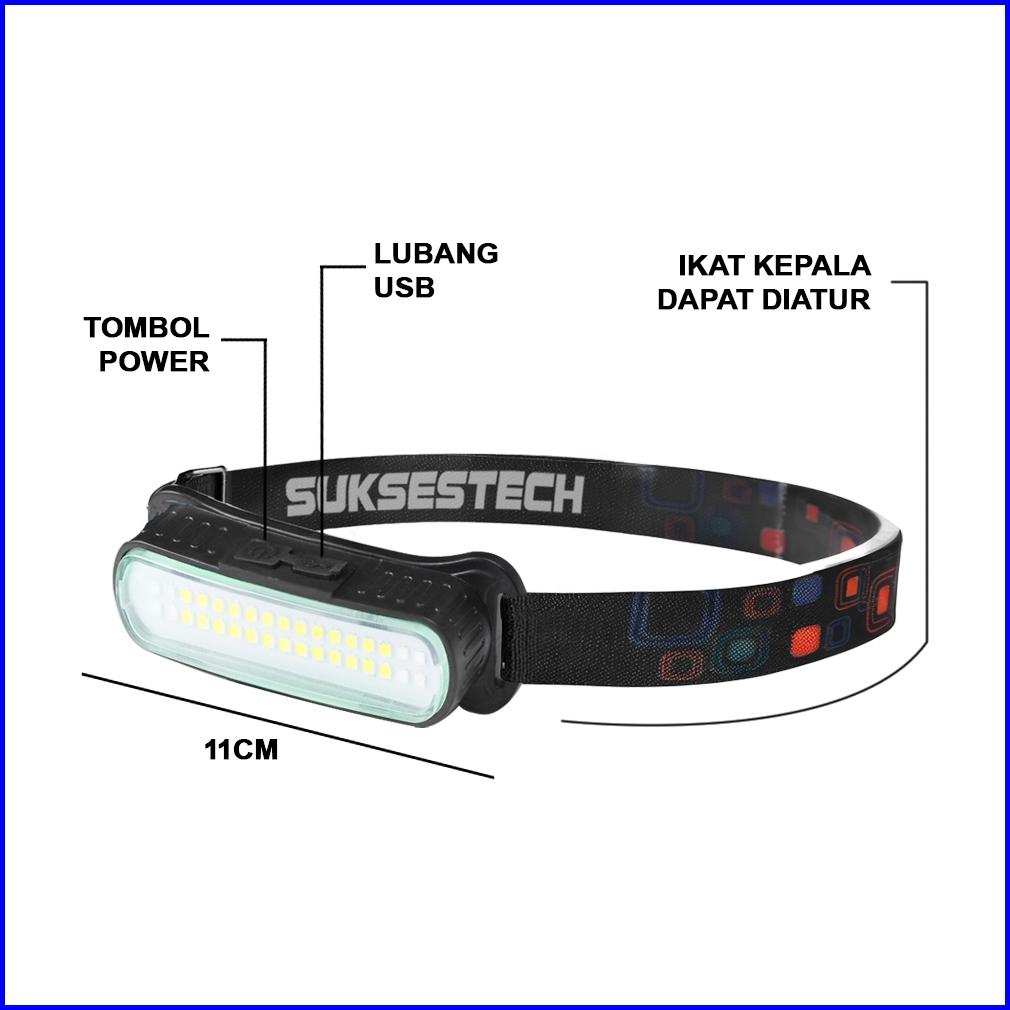 Suksestech Headlamp Senter Kepala Cas 4 Mode Cob Led Working Headlamp Waterproof 1986
