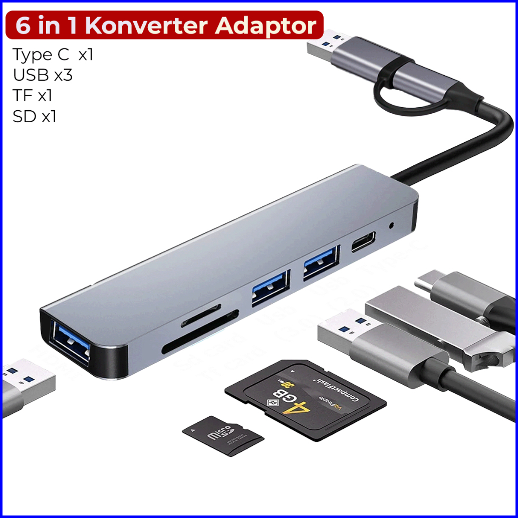 Suksestech Konverter Adaptor 6 In 1 Adapter Multi Converter Sd Tf Usb Type C Tpc-127