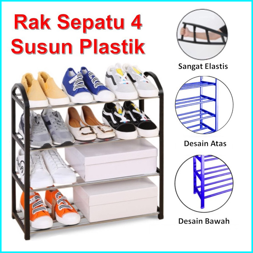 Rak Sepatu 4 Tingkat Sudun Bahan Plastik Shoe Rack Tempat Sandal Bongkar Pasang Portable