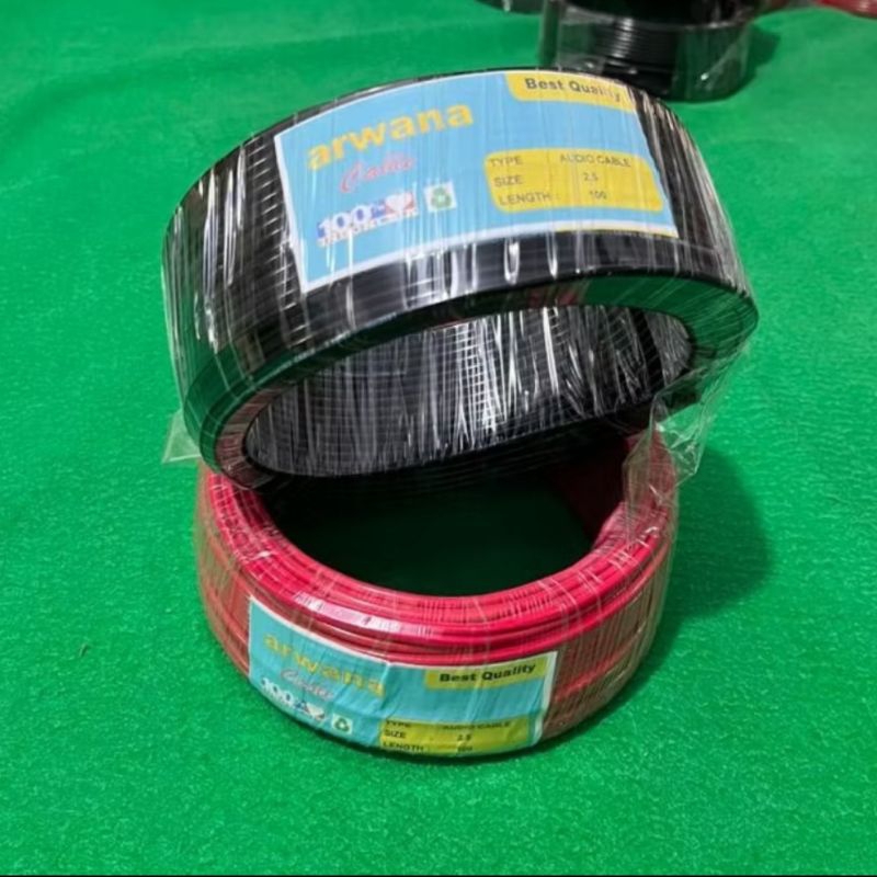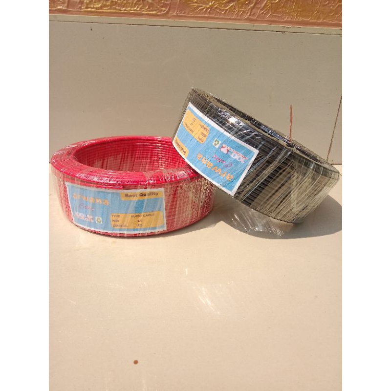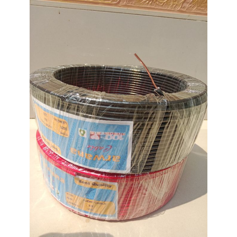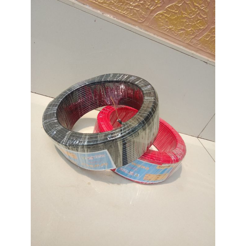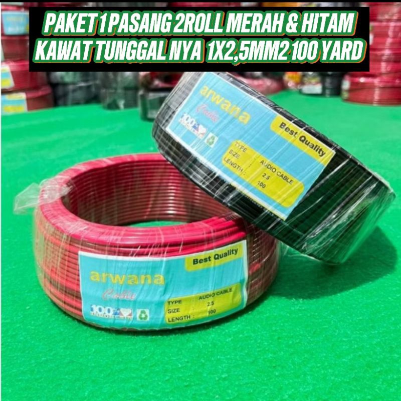 PAKET 1 PASANG 2ROLL MERAH &HITAM/ KABEL LISTRIK/KABEL TEMBGA KAWAT TUNGGAL/ KABEL NYA 1X2,5MM2 100YARD