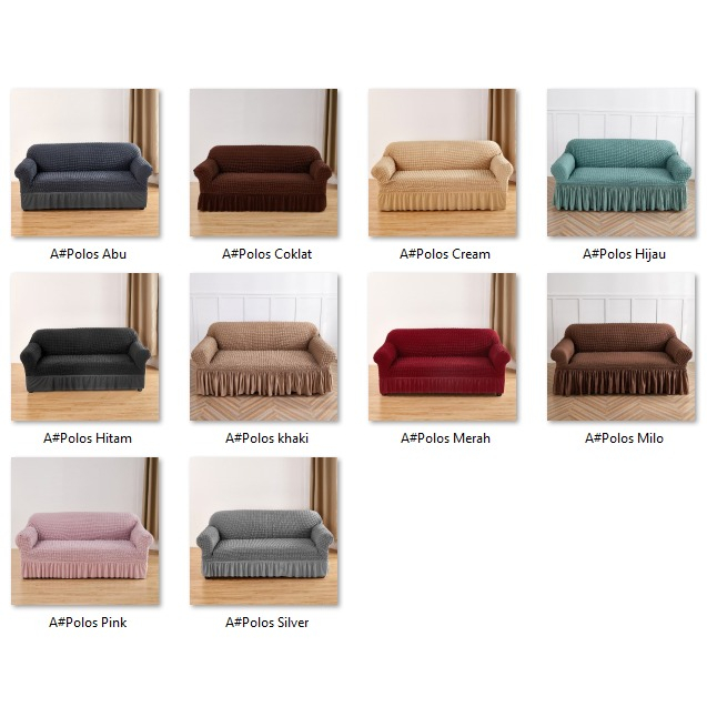 UJ067 Cover Sofa Elastic Polos /1/2/3/4 Seater/ Sofa Cover With Skirt Stretch Rumbai