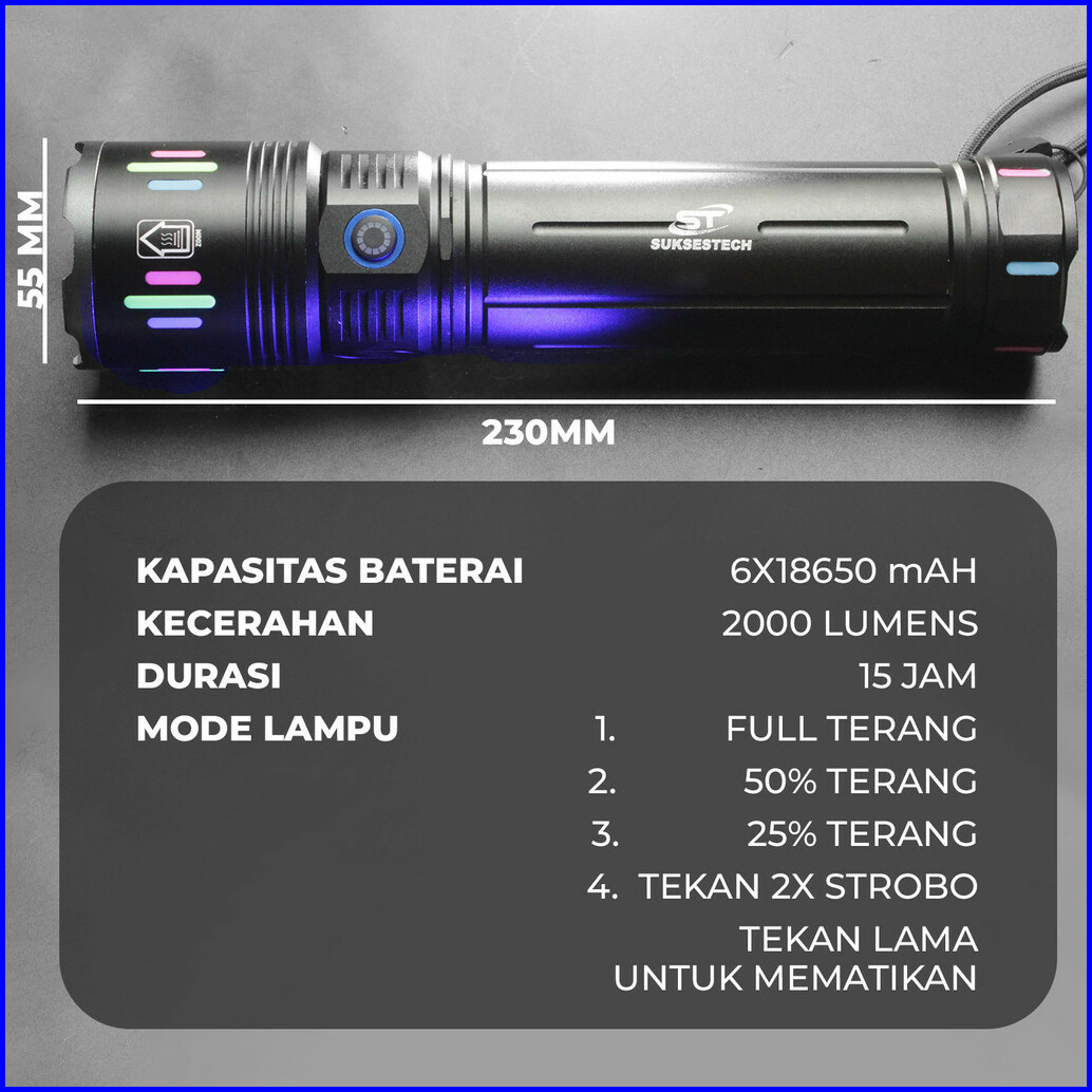Suksestech Lampu Senter Dengan Zoom In Out Aluminium 2000 Lumens 4 Mode Cahaya P802-2