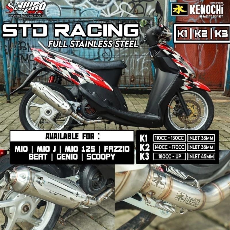 KNALPOT STANDAR RACING KENOCHI TYPE K SERIES STAINLESS STELL FOR MIO BEAT SCOOPY GENIO GEAR FAZZIO FILANO XEON VARIO