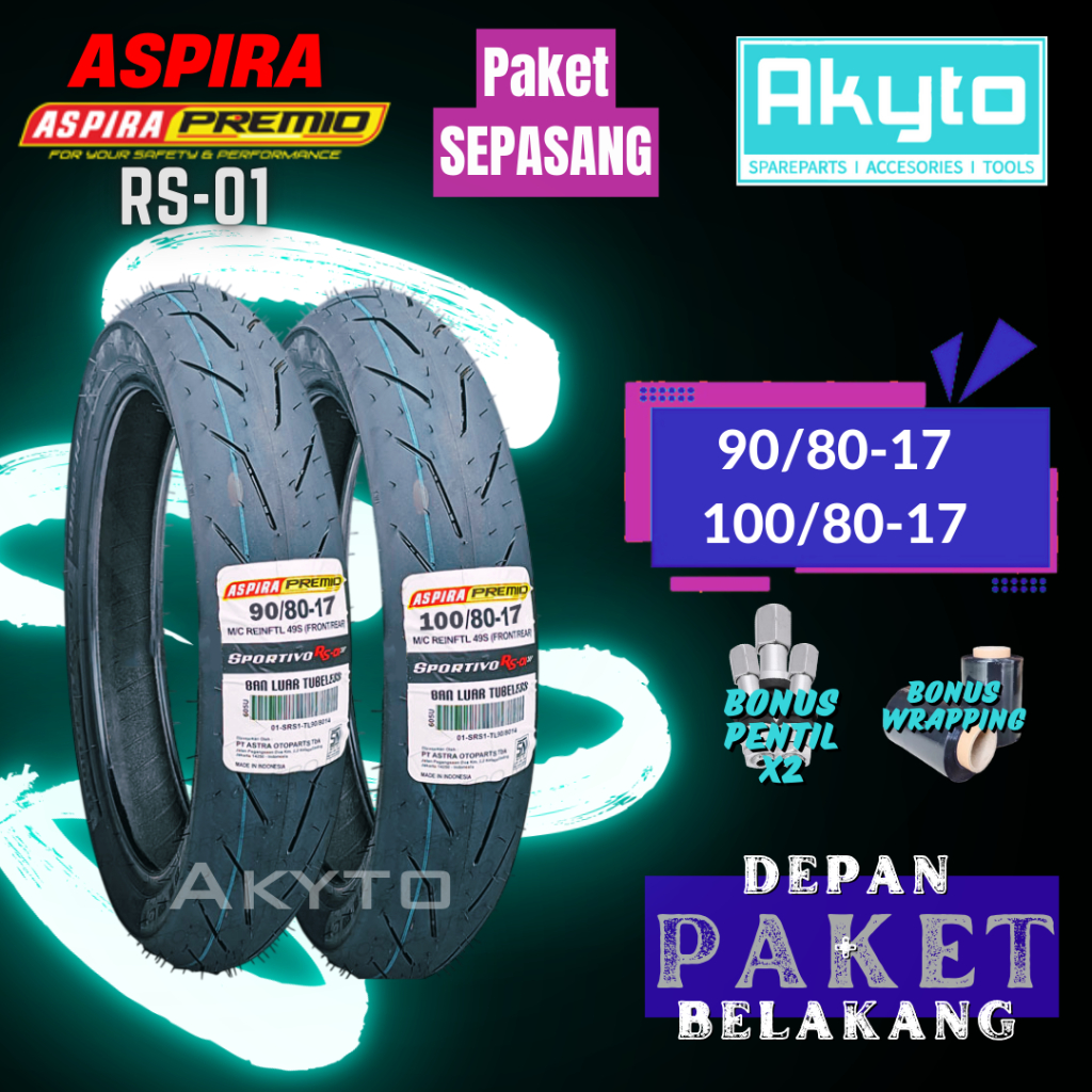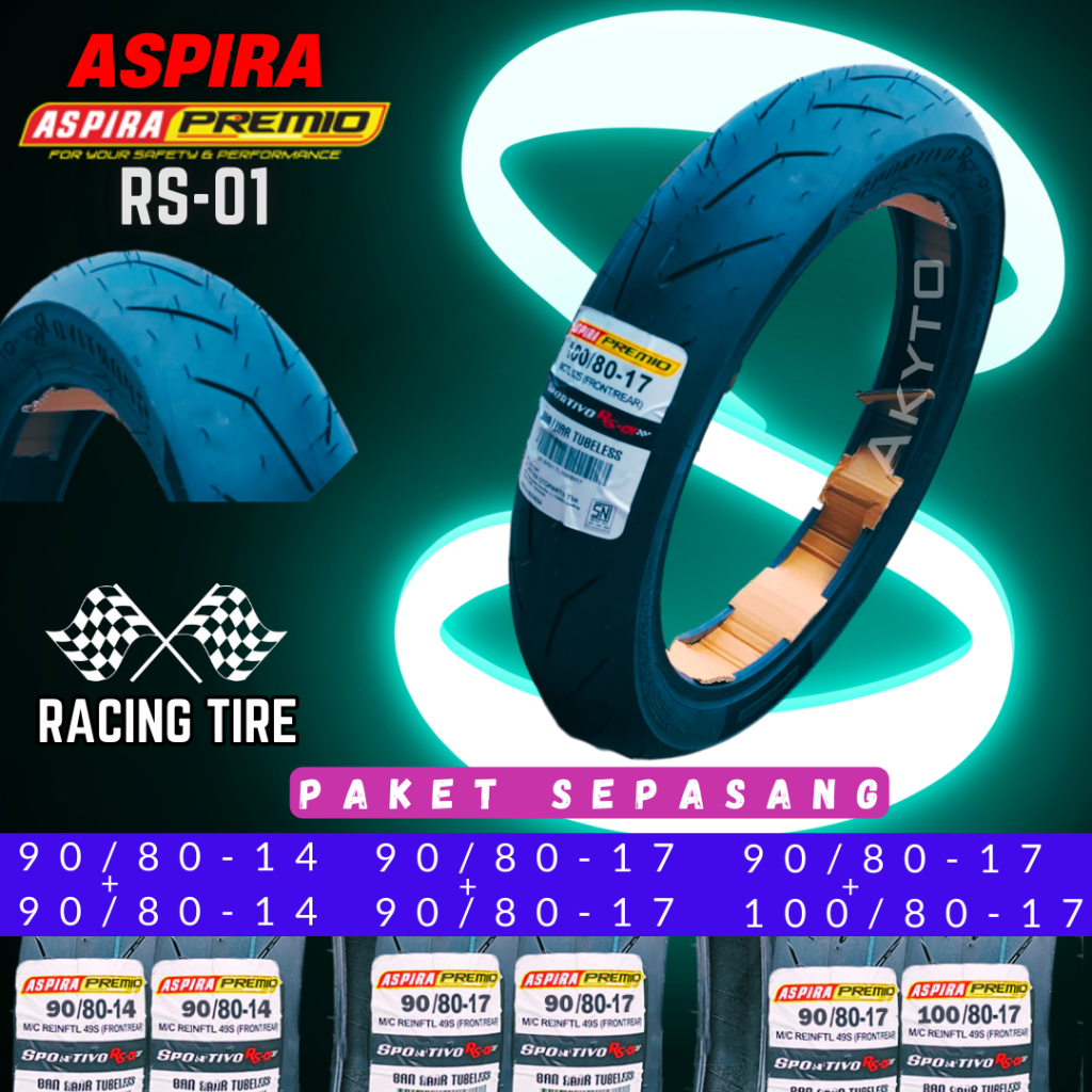 SEPAKET 2 PC BAN ASPIRA PREMIO RS-01 FREE P3NTIL / BAN TUBELESS / BAN BALAP ROAD RACE DRAG RACE BALAP / MOTOR BEAT VARIO