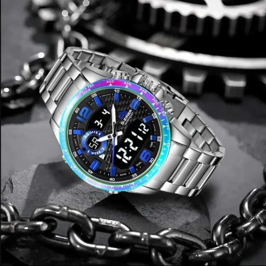 [Mall] DZINER JAM TANGAN PRIA 8306 DOUBLE TIME RANTAI STAINLESS STEEL WATER RESISTANT 3 ATM