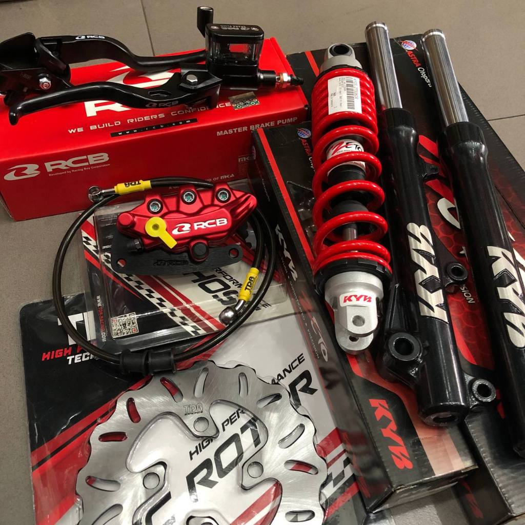 Paketan Master Rem RCB E3 Kotak 14mm set kanan kiri+Shock Shockbreaker Depan Belakang KYB Zeto 310mm 330mm+Kaliper RCB S