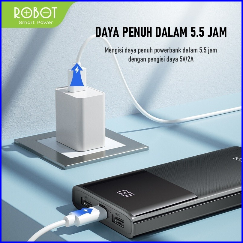 Robot Rt190s Powerbank 10000mah Led Dual Input Type C Micro Usb