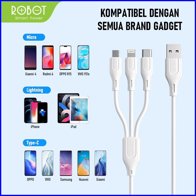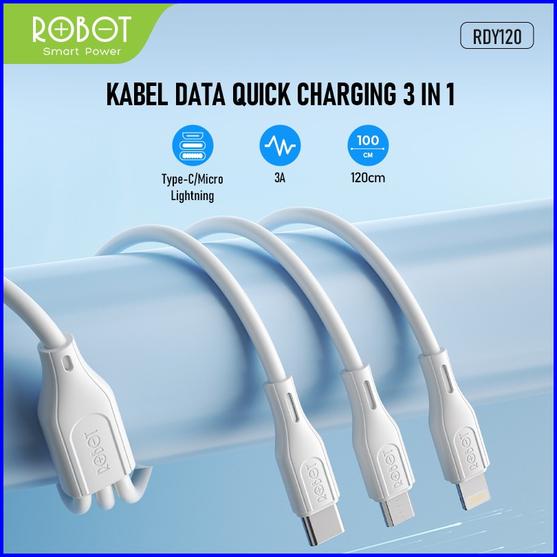 Robot Rdy120 Kabel Data 3 In 1 Type-c Micro Lightning Quick Charging
