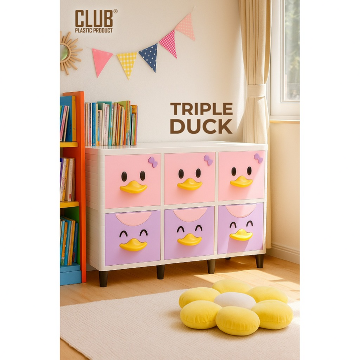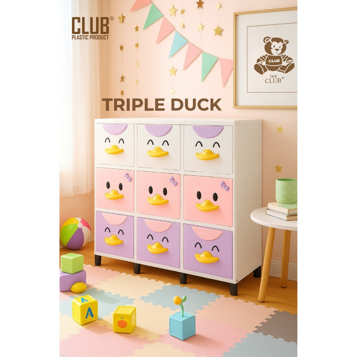 Lemari Plastik CLUB Triple Double Duck Susun 3 Anak Serbaguna Lucu