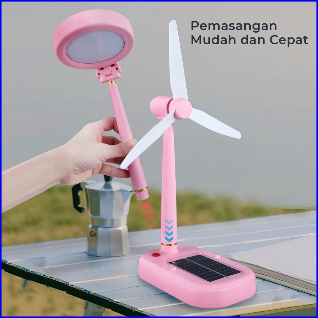 Suksestech Lampu Meja Kipas Elektrik 2 In 1 Lampu Belajar Tenaga Surya Charger Multifungsi 1878
