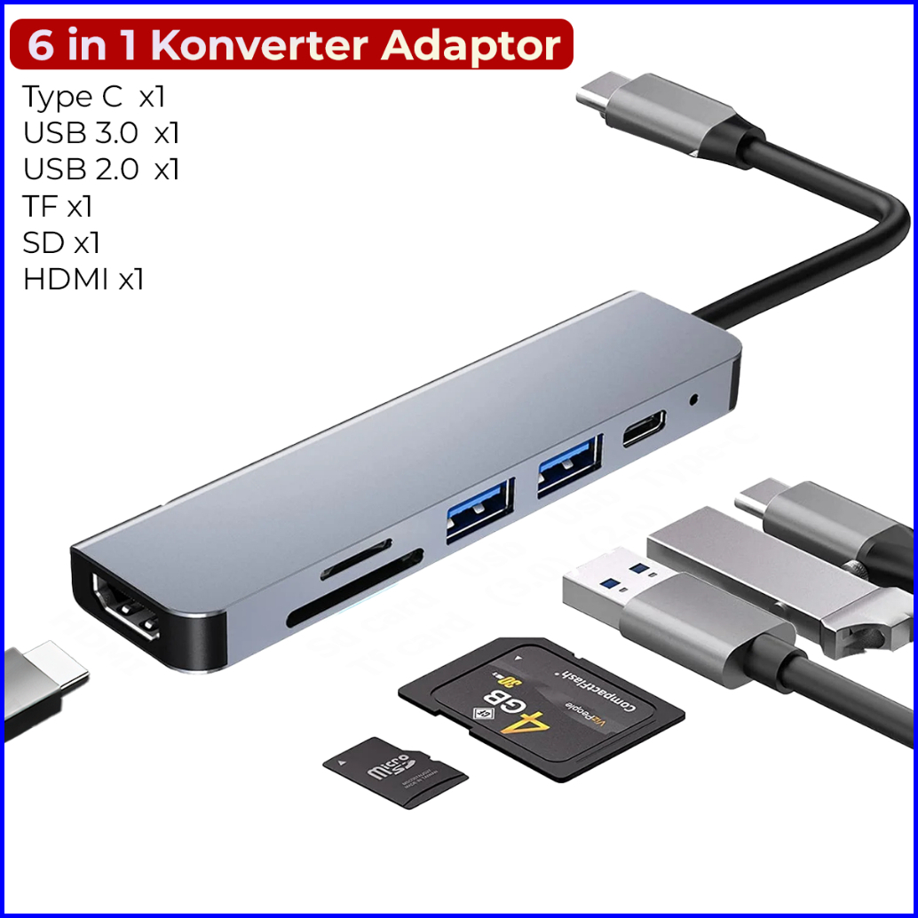 Suksestech Konverter Adaptor Usb Type C 6 In 1 Adapter Multi Converter Tpc-232