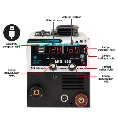 Mesin Las Mig 120A Welding Machine IGBT DC Inverter Las Listrik 3in1 MTMASAKI