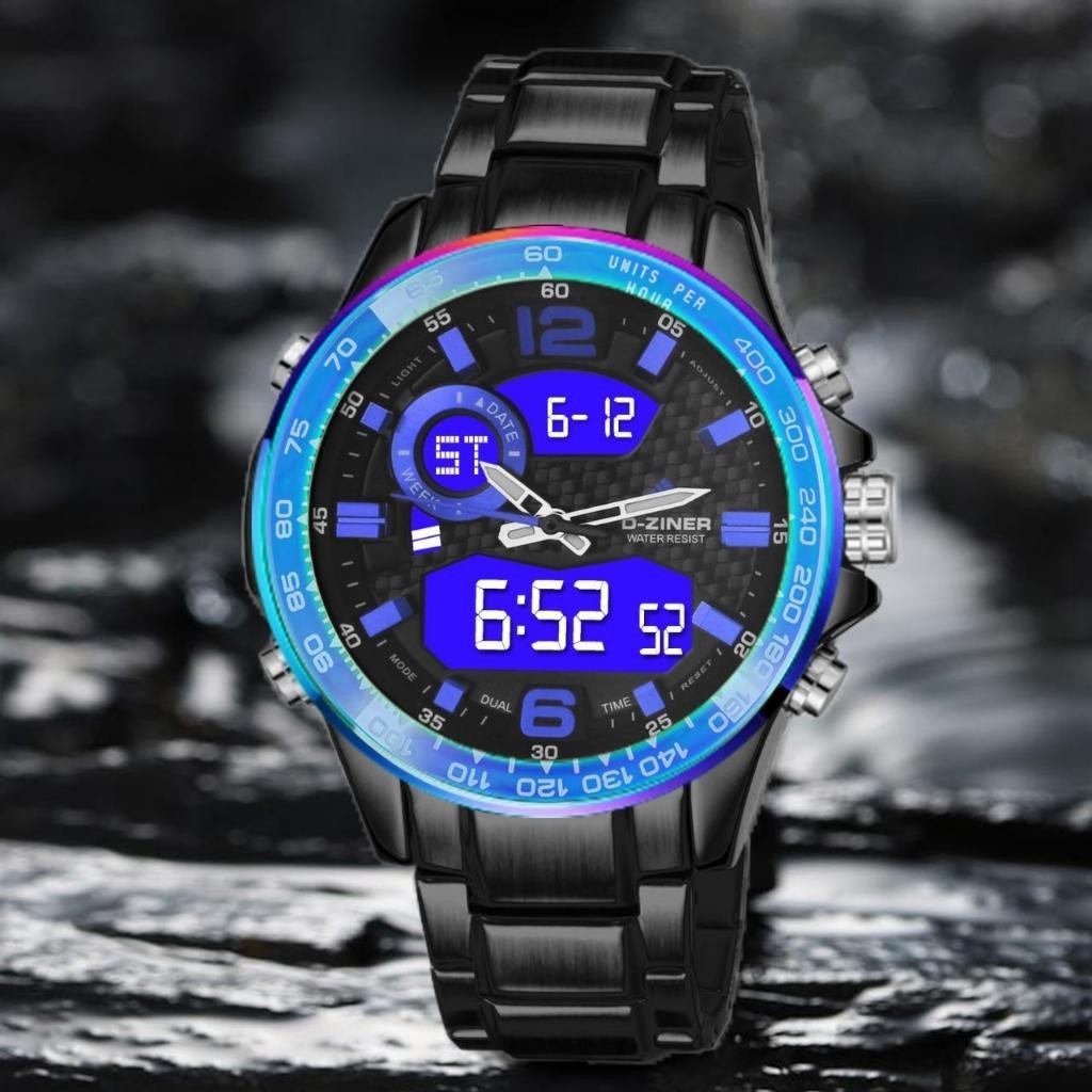 [Mall] DZINER JAM TANGAN PRIA 8306 DOUBLE TIME RANTAI STAINLESS STEEL WATER RESISTANT 3 ATM