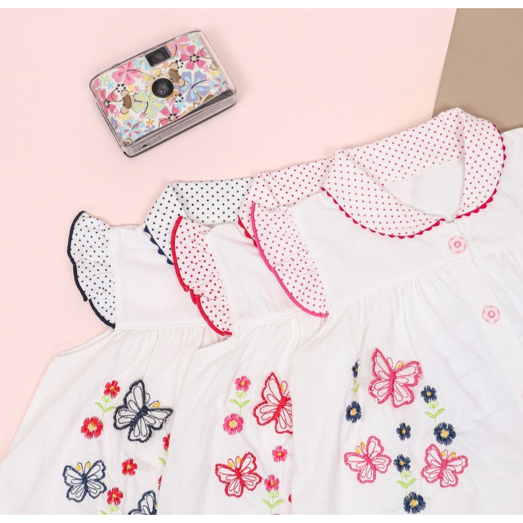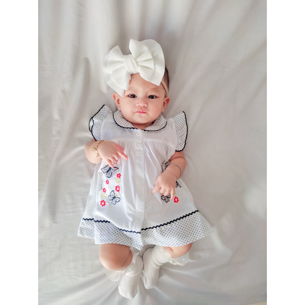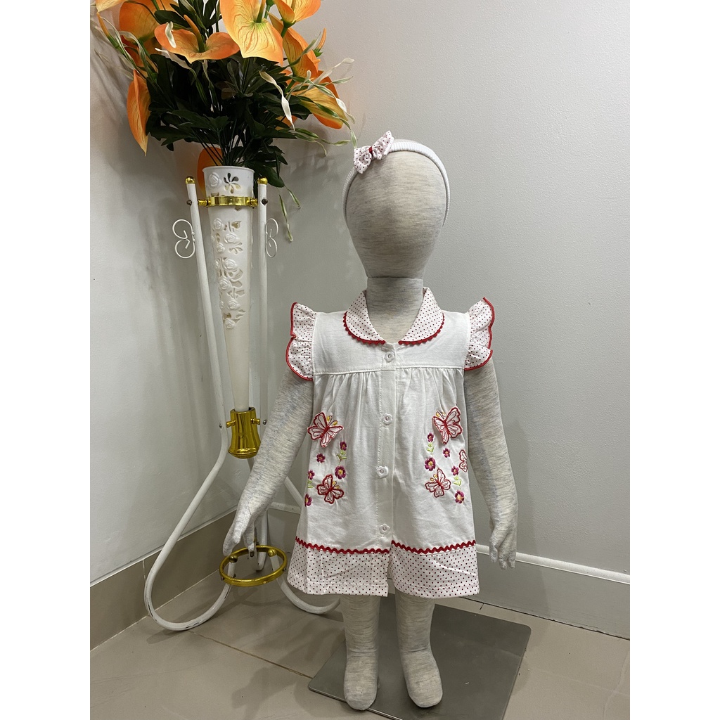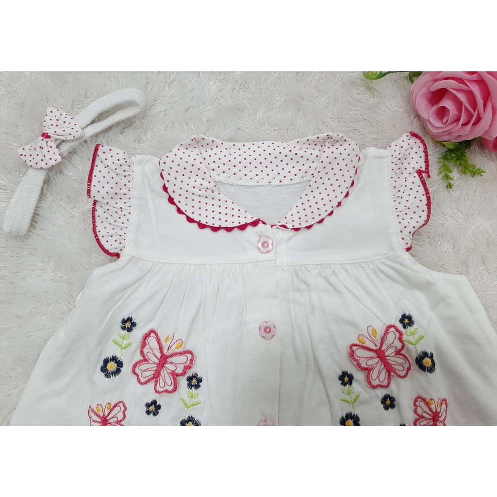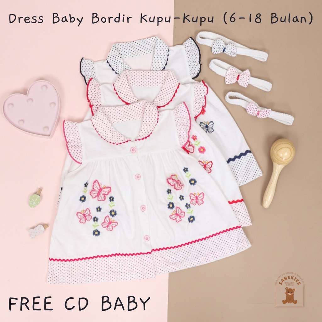 Dress Bayi Perempuan Bordir Kupu Kupu Untuk 6-18 Bulan Free Celana Dalam Baby Dan Bando Pita