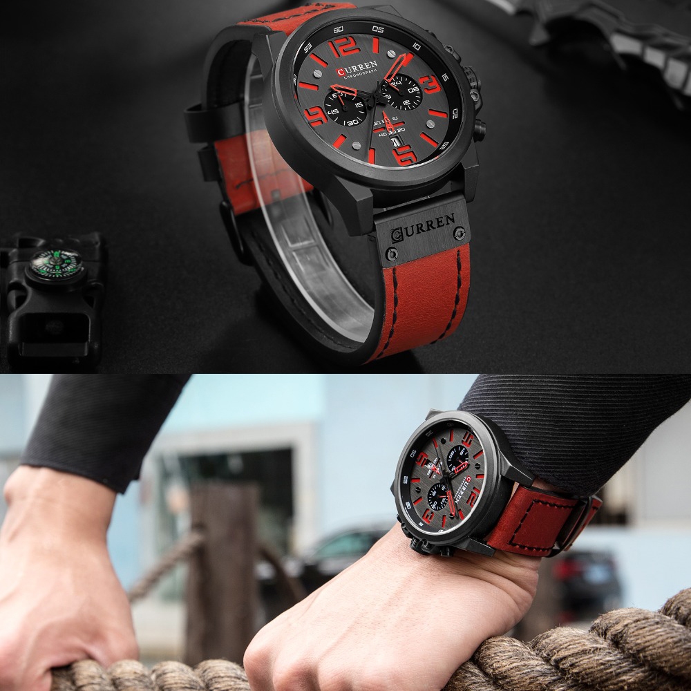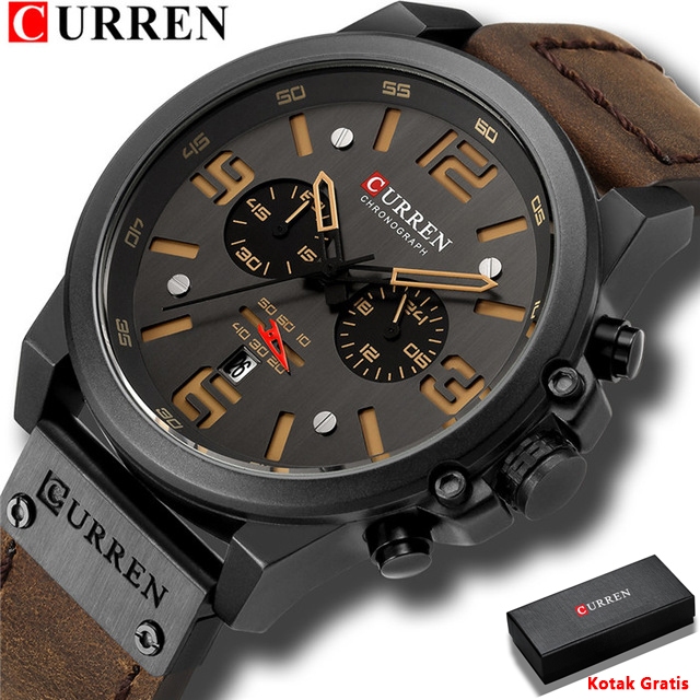[Mall] CURREN JAM TANGAN PRIA ANALOG TALI KULIT CHRONOGRAPH AKTIF JAM TANGAN COWOK 8314