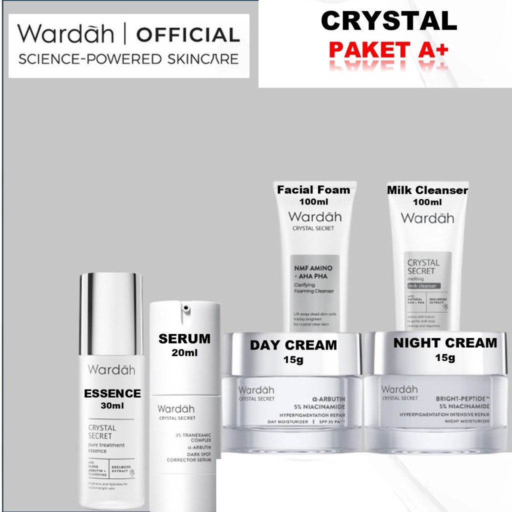 PAKET WARDAH Crystal Secret Series Mencerahkan Lengkap | Milk Cleanser, Micellar Cleansing Gel, Foaming Cleanser, Exfoli