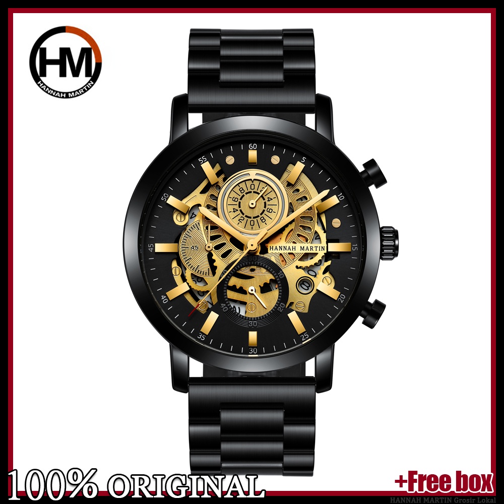 [Mall] JAM TANGAN PRIA HANNAH MARTIN 100 PERSEN ORIGINAL FASHION TAHAN AIR COWOK KRONOGRAF TANGGAL DESAIN BERONGGA-UKIRAN QUARTZ ANALOG LAKI COWO MURAH