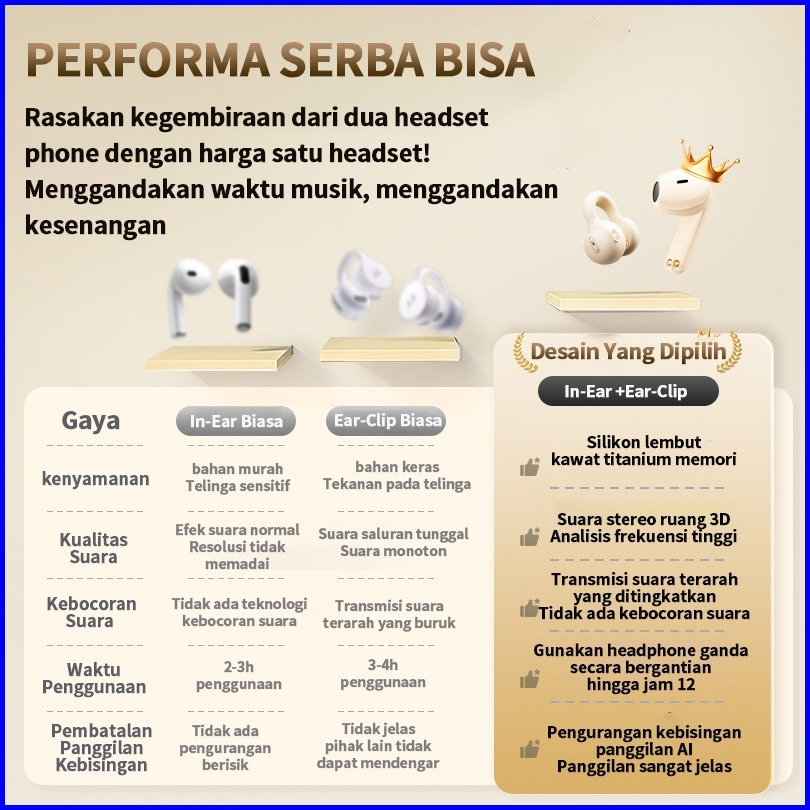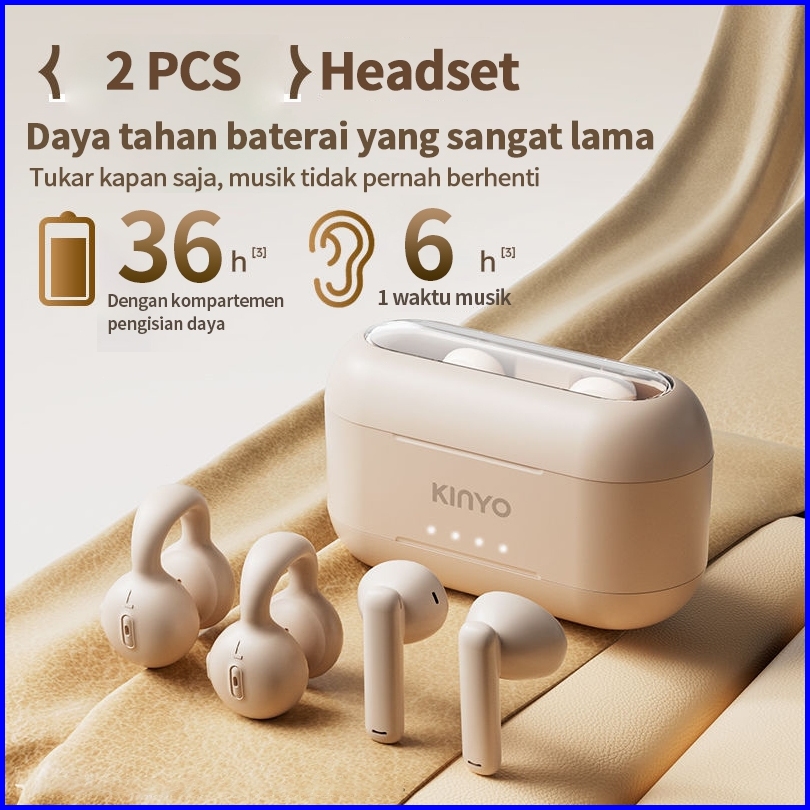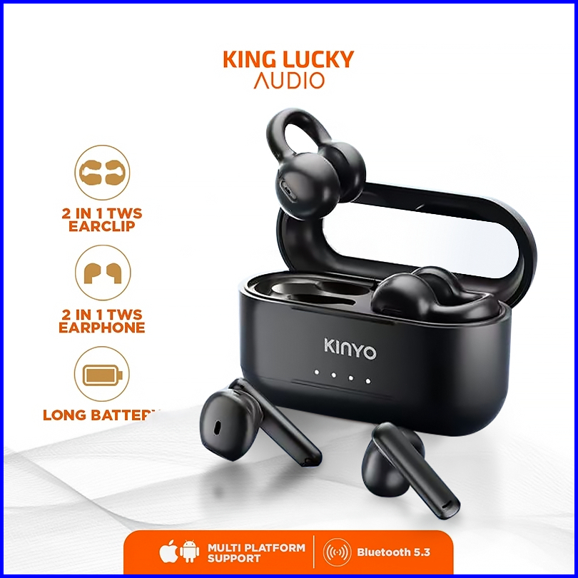 Kinyo I25 Tws 2 In 1 Headset Bluetooth 5.3 Ear Klip In-ear Earphone Touch Control Ipx4 Waterproof Baterai Tahan Lama Hif